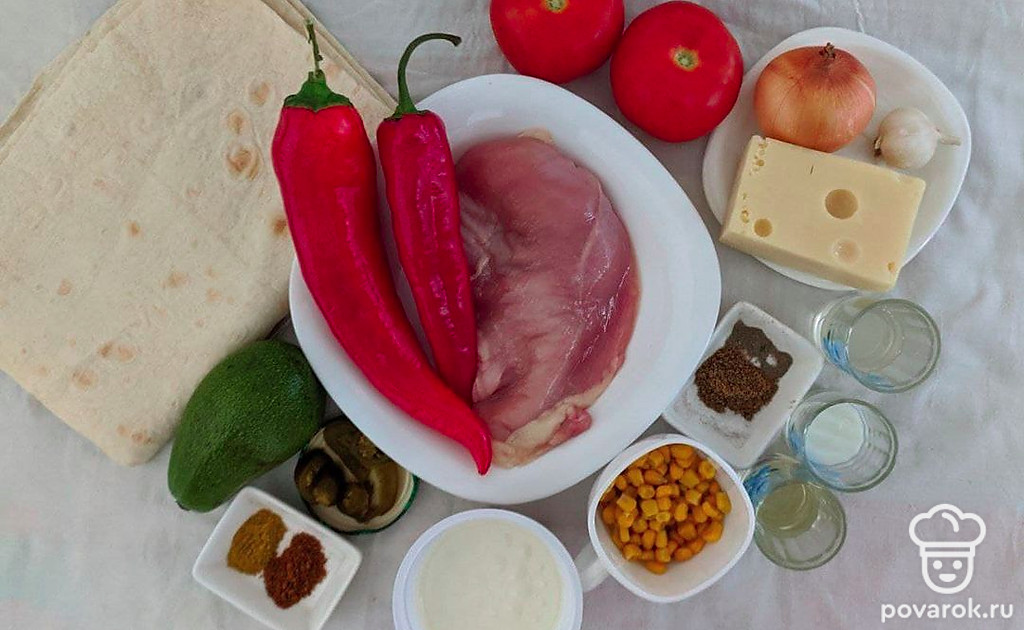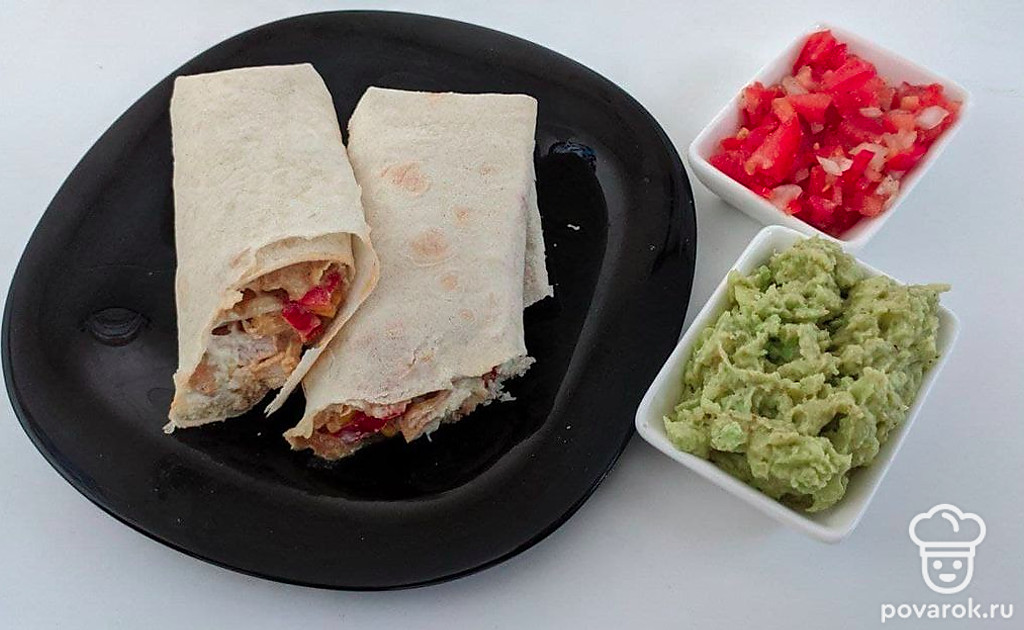 Сочная шаурма с куриным филе и соусами из авокадо и помидоров