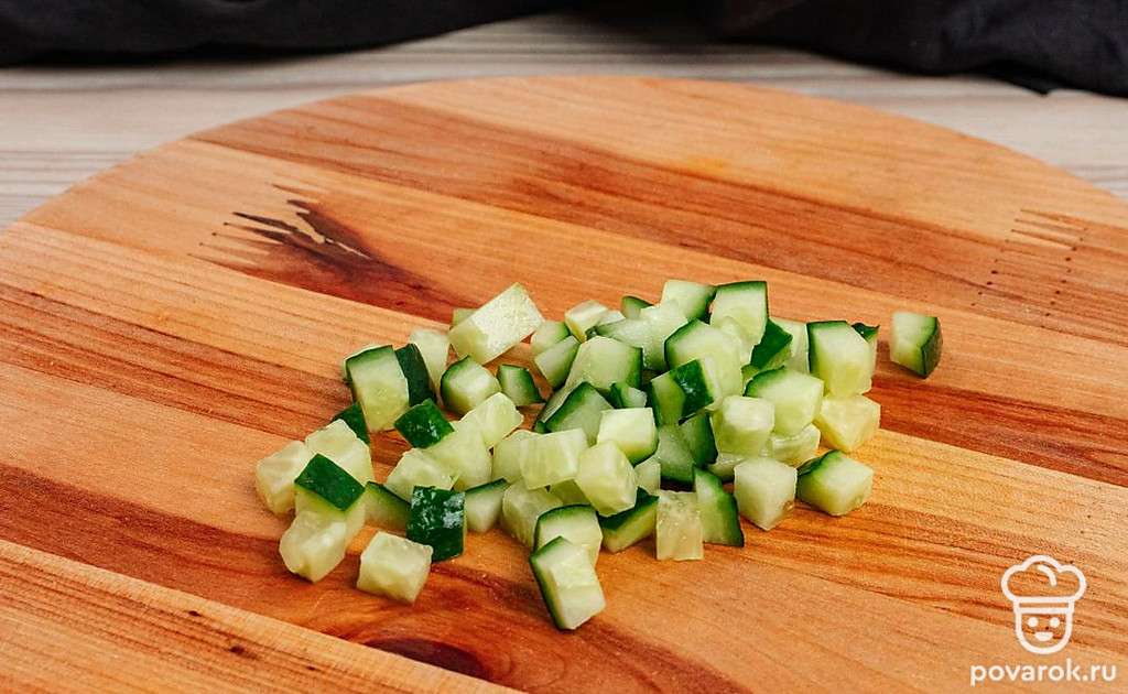Нарежьте огурец на мелкий кубик.