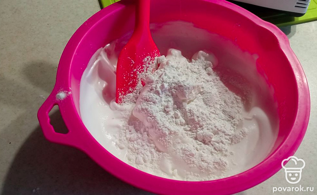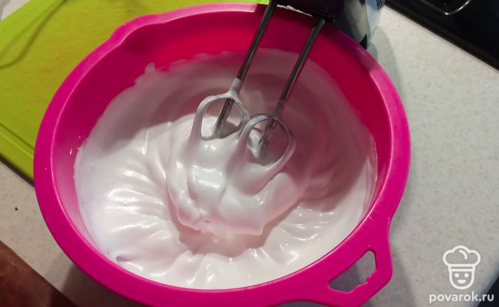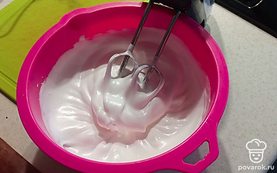 Взбиваем белки с сахаром и лимонной кислотой в крутую пену.
