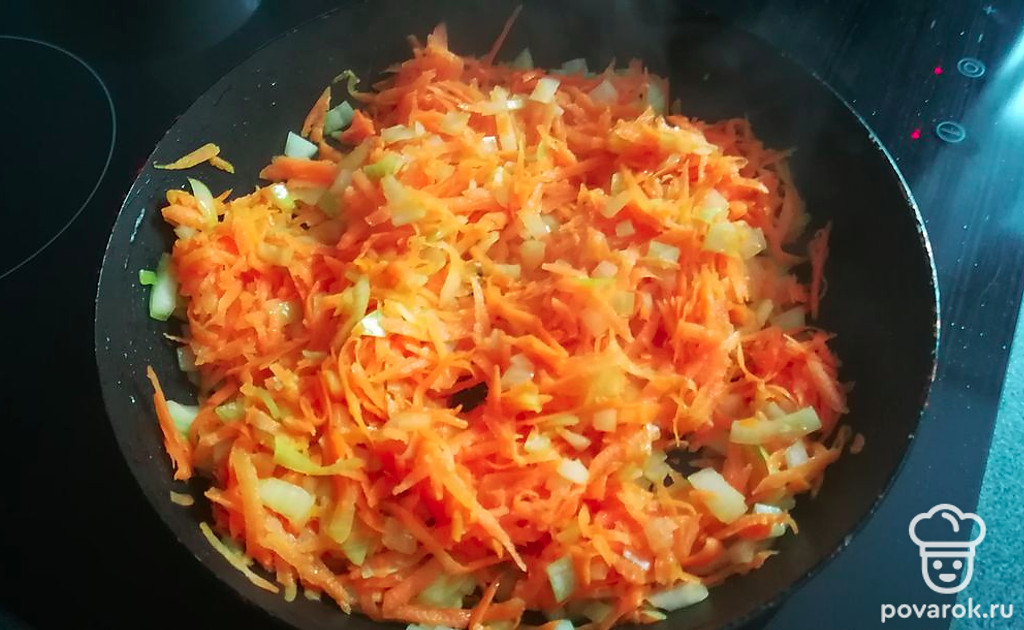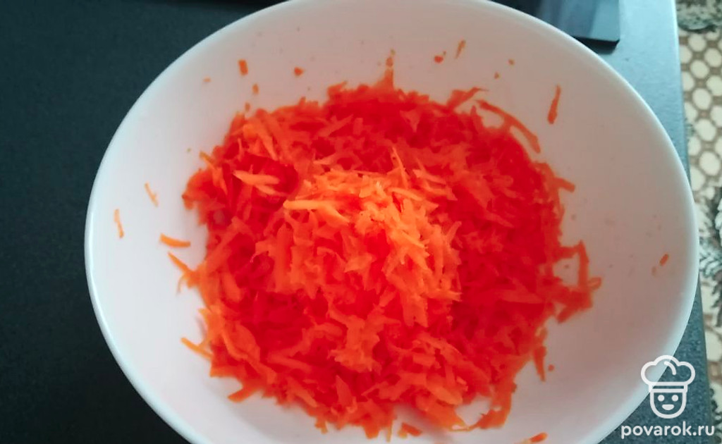 Натереть морковь.