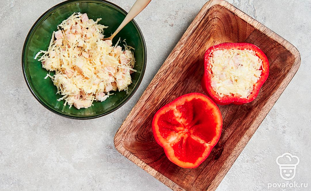 Фаршированный перец с начинкой из сыра и ветчины может быть как закуской, так и основным блюдом. В первом случае ингредиенты не проходят тепловую обработку, болгарские перцы просто заполняются начинкой и пропитываются некоторое время. Во втором — фаршированный овощ отправляется в духовку. Независимо от того, какой способ приготовления выбран, получится вкусно и сытно. Если необходимо получить более яркое блюдо, используйте перцы разных цветов.