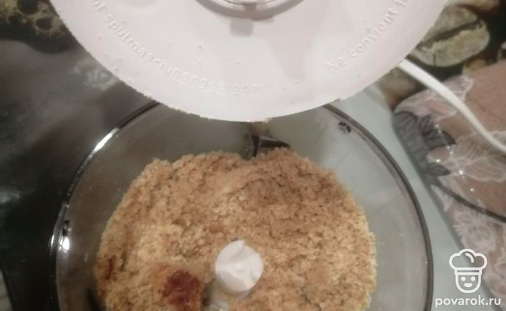 Печенье перемолоть в блендере.