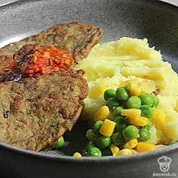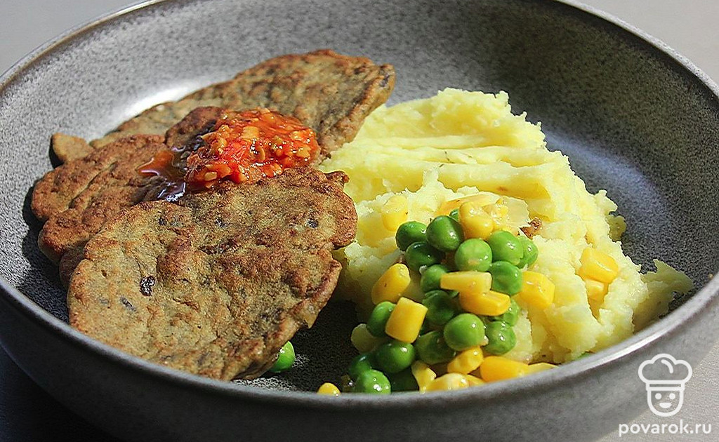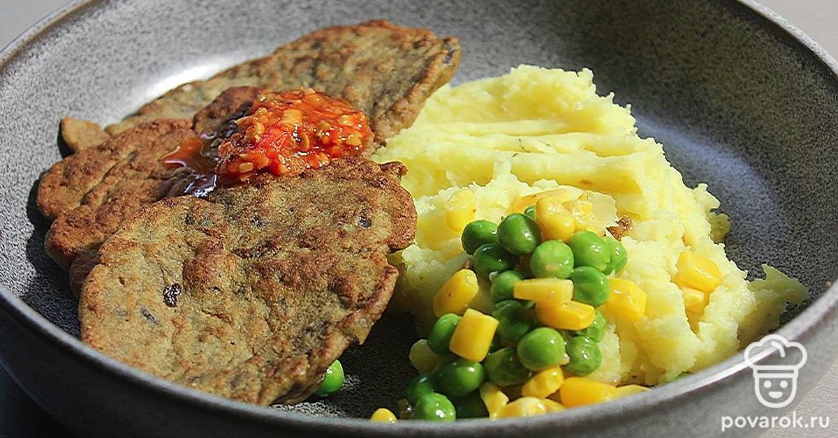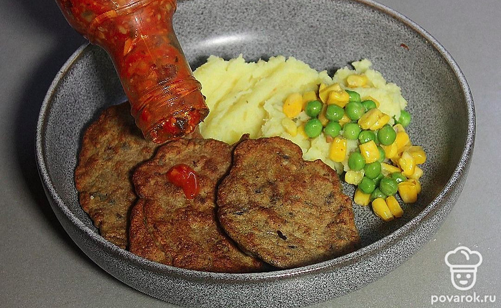 Сытное блюдо, которое сочетает в себе насыщенный вкус печени, нежность картофельного пюре и яркость томатного соуса.