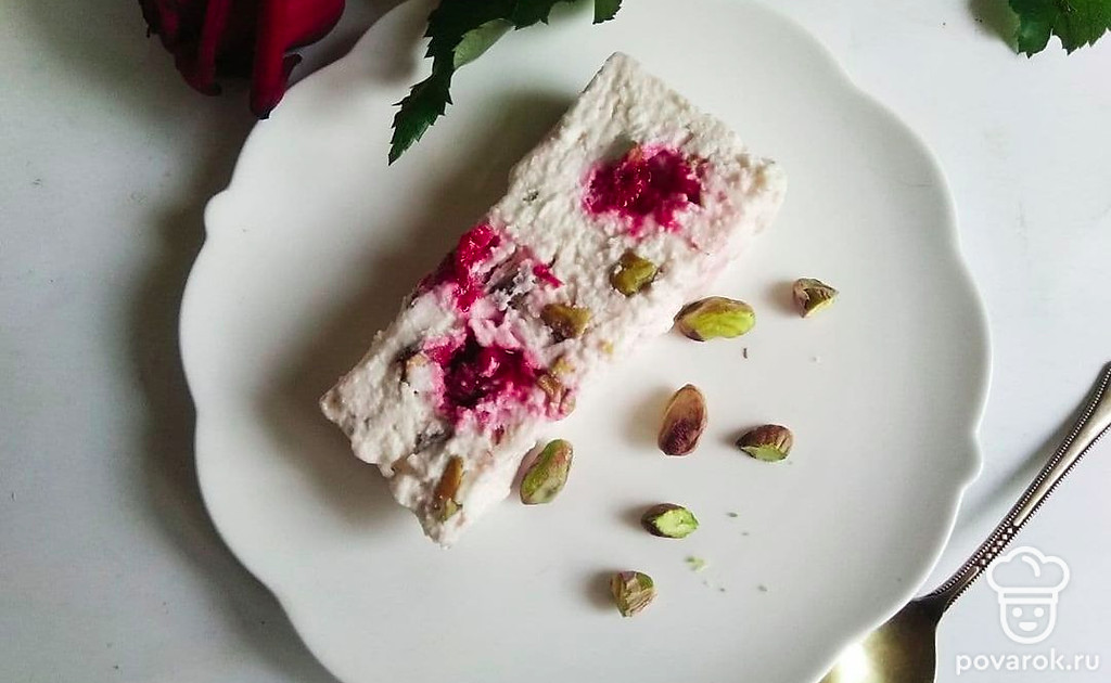Удивительное лакомство, приготовленное своими руками, порадует даже самый взыскательный вкус. Сочетание вкусов сливок, малины и фисташек придает творожному террину незабываемый вкус. Этот потрясающе-нежный десерт послужит украшением любому торжеству или превратит повседневный день в праздник.