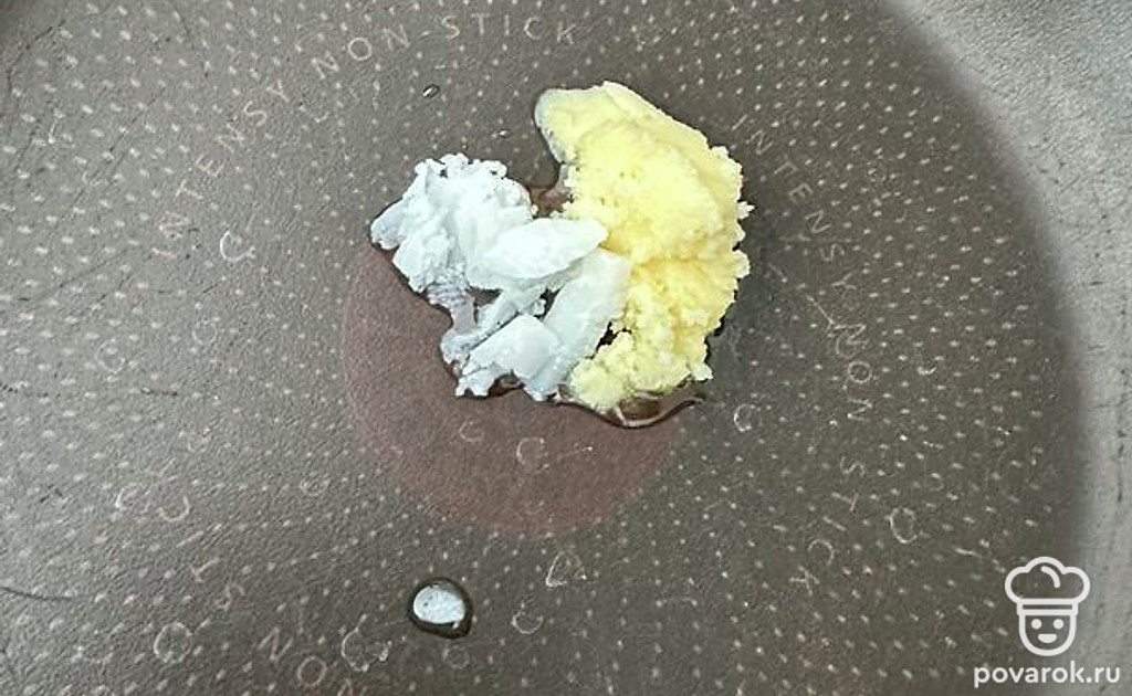 Разогреваем сковороду с маслом гхи и кокосовым маслом (можно заменить на подсолнечное).