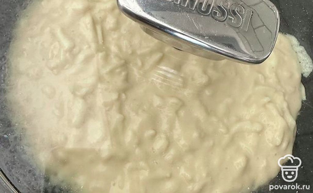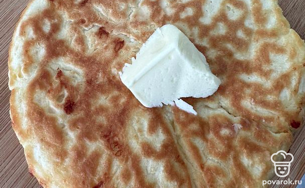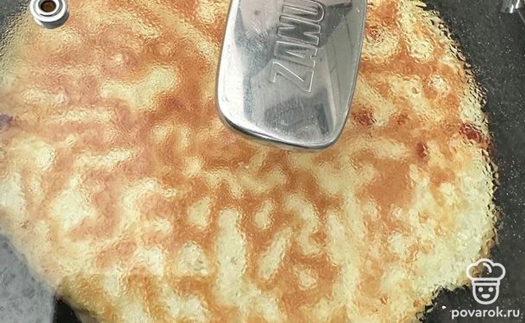 Выпекаем под крышкой на медленном огне 5-6 минут с одной стороны.