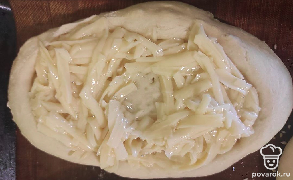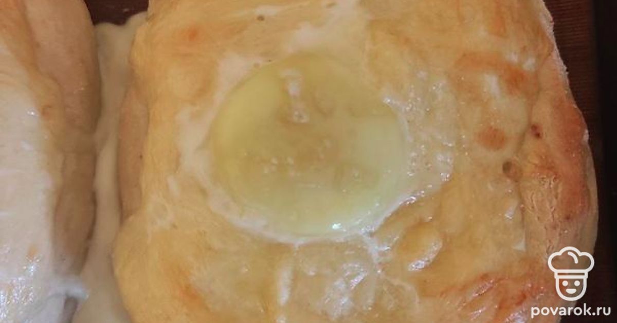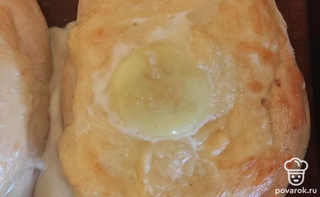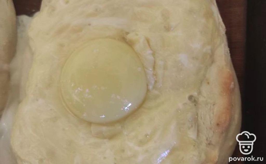 Когда сыр расплавиться и тесто подрумянится, вытащить и добавить яйцо. Потом снова поставить в духовку до готовности. Вкуснее, когда желток не сильно запечённый.