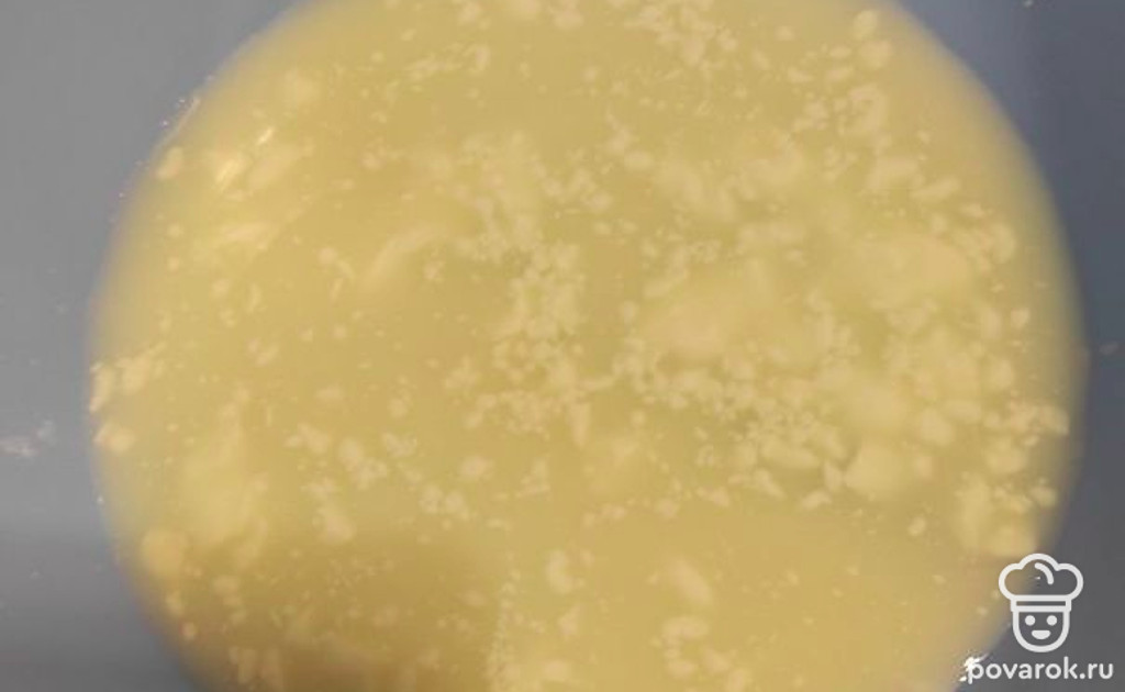 В сыворотку добавьте соль, соду и муку. Замесить тесто.