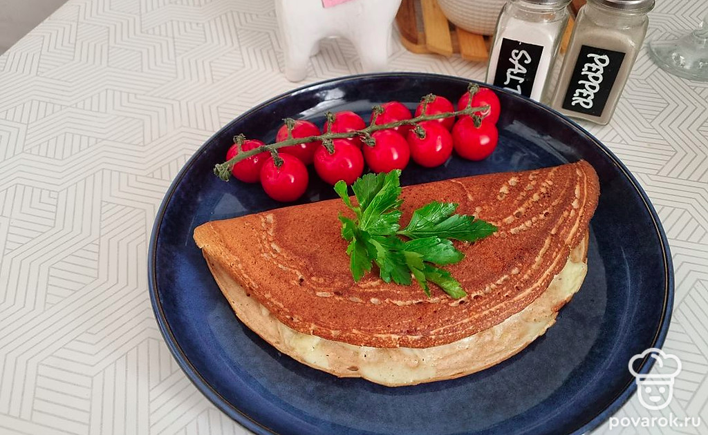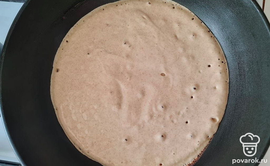 Разогреть антипригарную сковороду, вылить тесто и жарить с двух сторон до готовности.