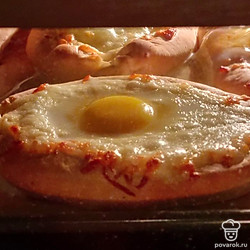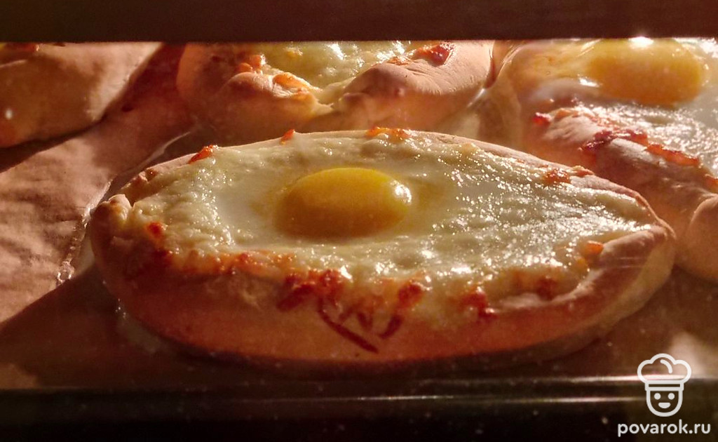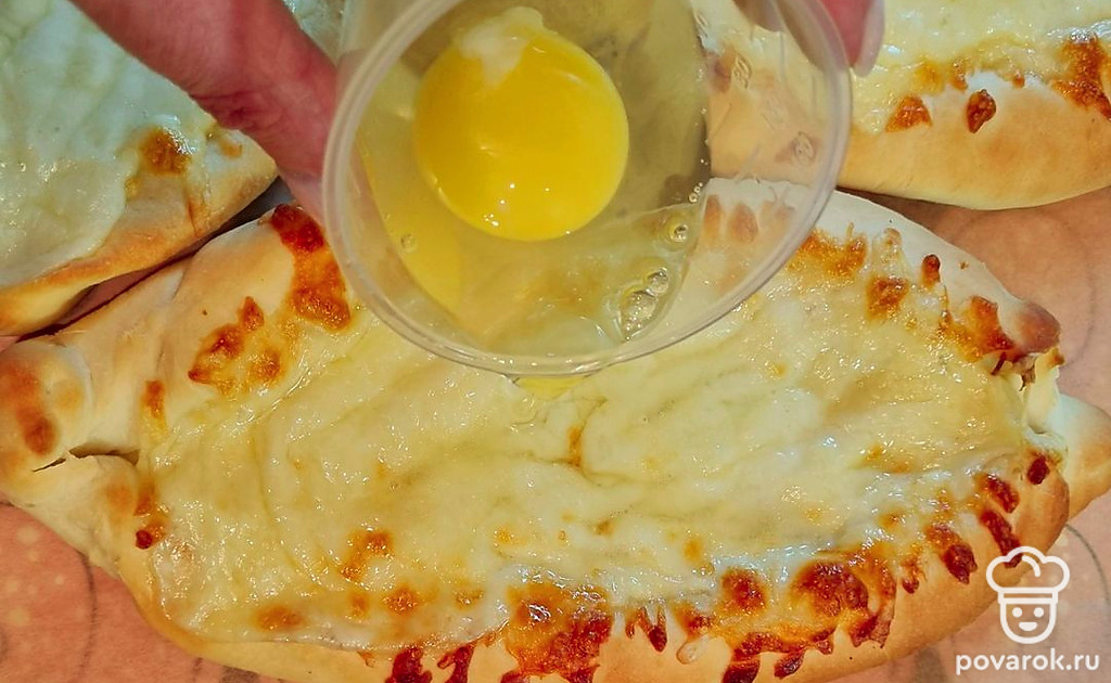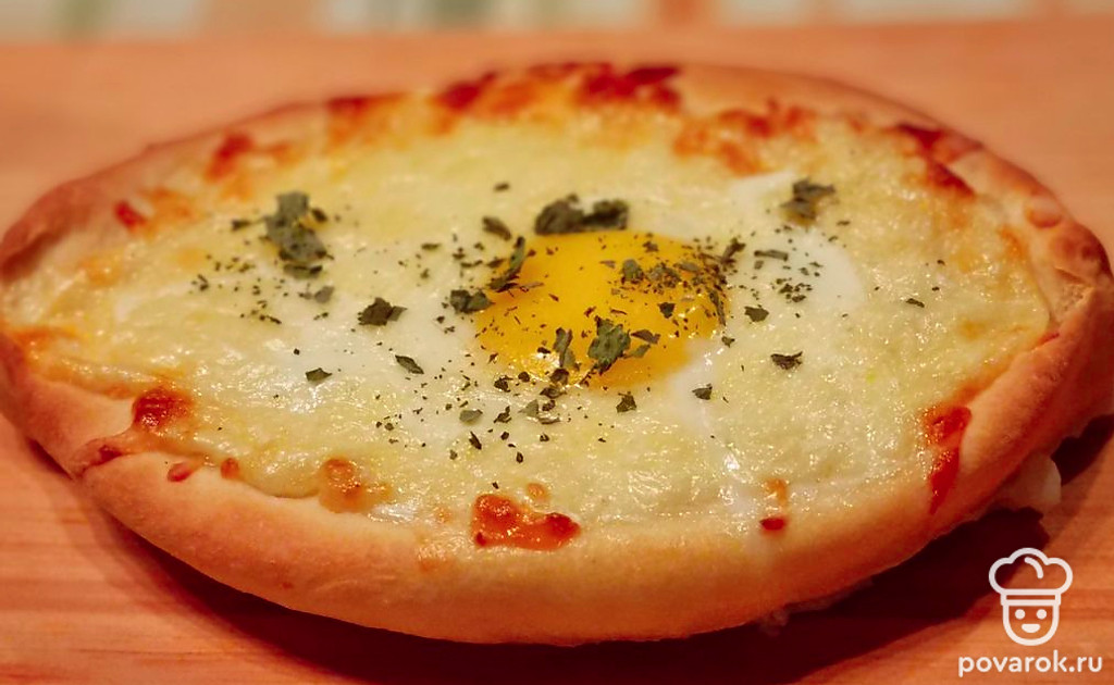 Хачапури по-аджарски выпекаются из простого теста и сыра сулугуни обязательно с добавлением запеченного яйца. Едят хачапури руками, макая корочку в яйцо.