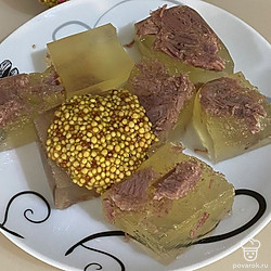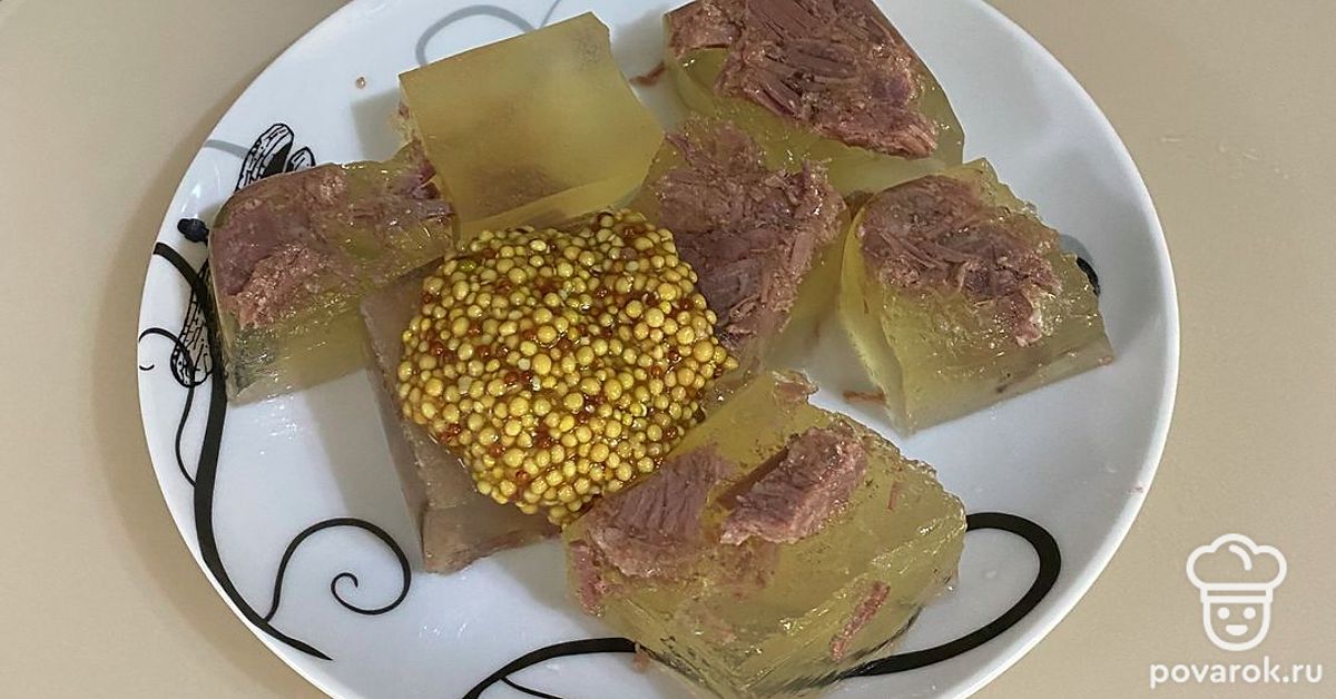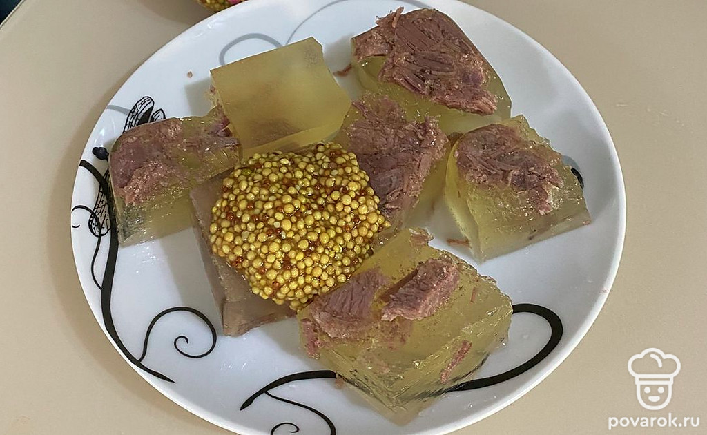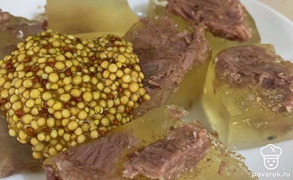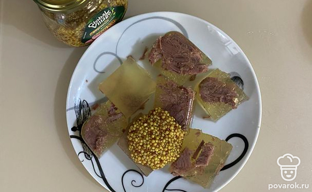 Убираем в холодильник, накрыв форму крышкой на ночь. Готовый холодец режем на квадраты.