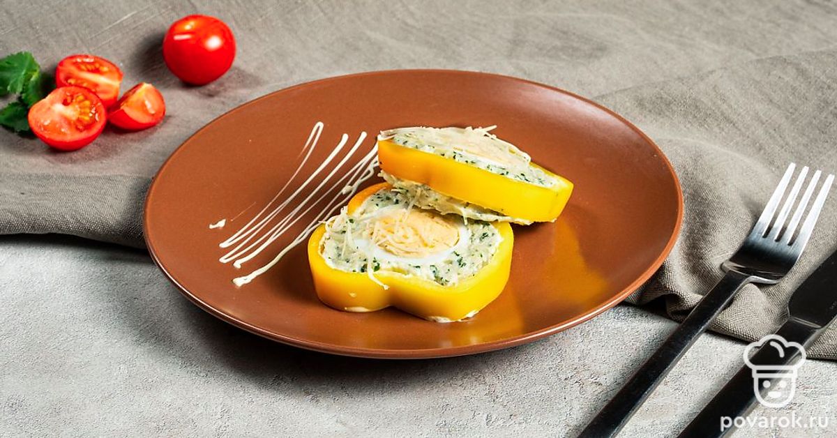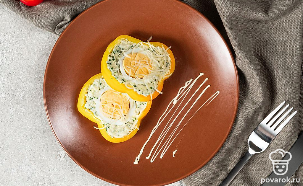 Для приготовления закуски из фаршированного яйцом болгарского перца возьмите крупные экземпляры овоща. Яркие пятна на поверхности указывают на то, что плод созрел не до конца. Лучше покупать спелый овощ, поскольку при дозревании дома может нарушится его сочность и плотность. Плодоножка должна быть зеленой, сухой хвостик говорит о неправильном хранении. Цвет должен быть ярким и насыщенным, если же перец побледнел, значит, он уже перележал.