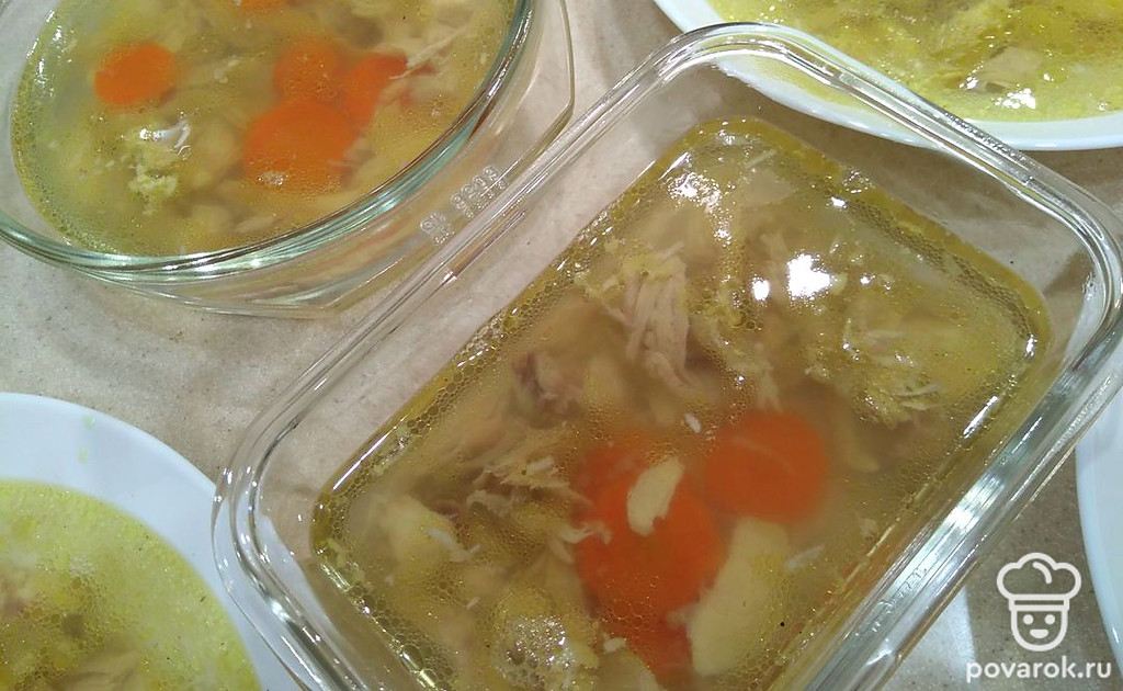 Разлейте бульон по тарелкам. Как только холодец остынет, уберите его в холодильник для застывания.