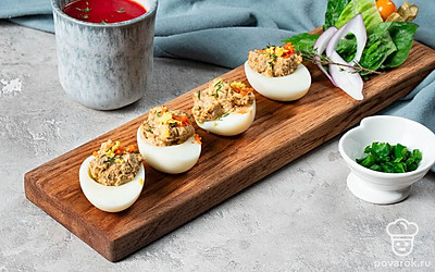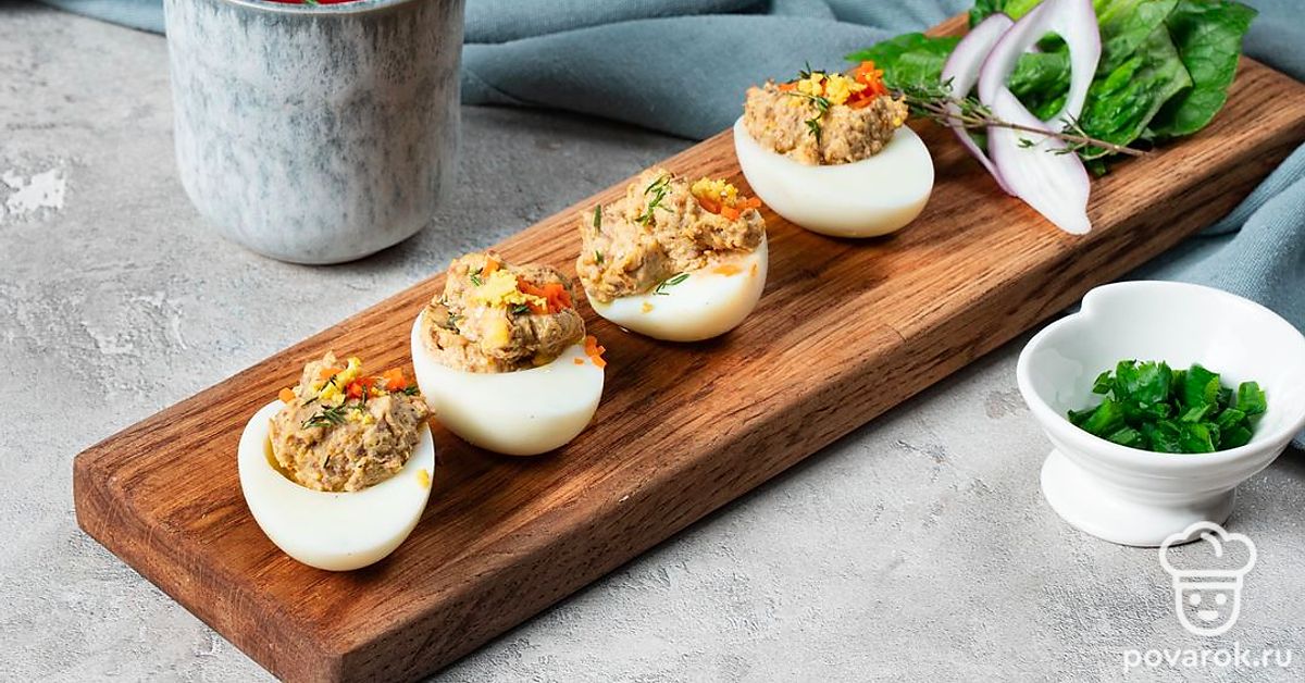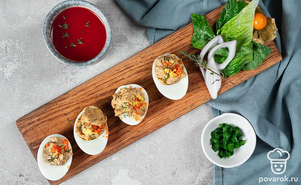 Фаршированные яйца — универсальная закуска легкого приготовления. Блюдо прекрасно дополнит как праздничный стол, так и самый повседневный. Вариант с печеночным паштетом получится малокалорийным, но при этом аппетитным и сытным. Добавьте в закуску орехи, украсьте зеленым луком, и она заиграет новыми красками.