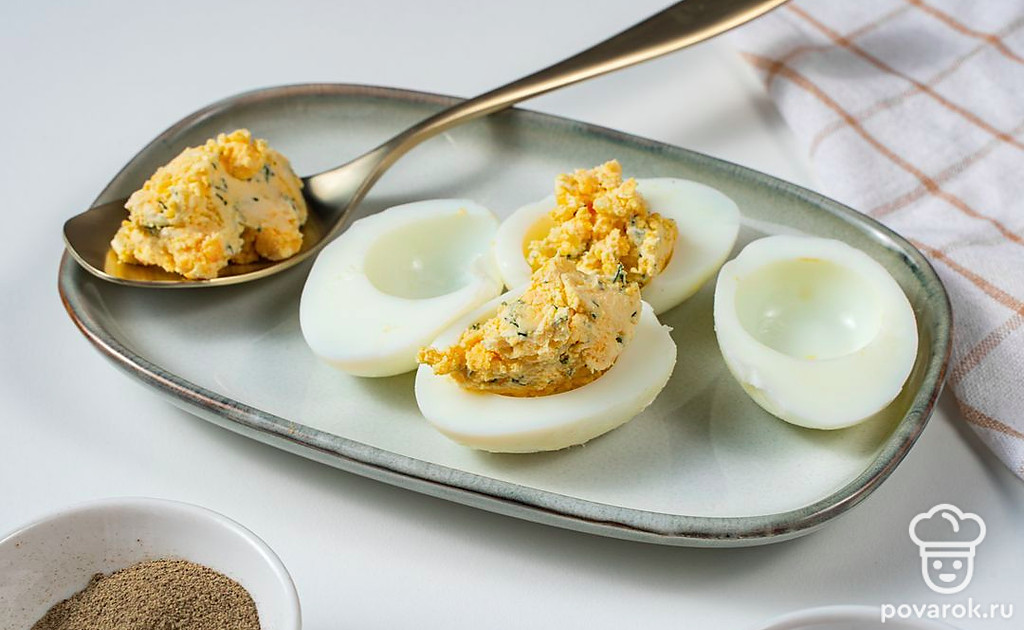 Яйца — уникальный ингредиент, который прекрасно гармонирует практически со всеми продуктами. Их сочетают с овощами и мясом, подают в горячем и холодном виде, используют в качестве основного блюда и закуски. Вариантов приготовления яиц множество, поэтому каждый сможет найти блюдо по вкусу. Фаршированные яйца — один из вариантов аппетитной закуски, в которой нежный сливочный сыр отлично балансирует с пикантным чесноком и яичным желтком. Готовое блюдо получается вкусным и очень питательным.
