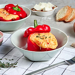Болгарские перцы, фаршированные яйцом, приготовить несложно, а в результате получается очень интересное средиземноморское блюдо с необычной начинкой из брынзы и зелени, смешанных в кремообразную массу при помощи блендера. Можно добавить сушеную паприку, чтобы добиться идеального аромата. Такие фаршированные перцы запекаются в духовом шкафу около 20 минут. Они получаются великолепными на вкус и очень аппетитно выглядят. Это прекрасный вариант для полезного и сытного завтрака для всей семьи.
