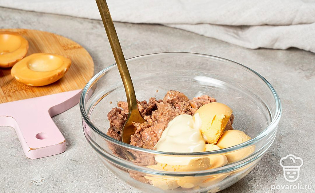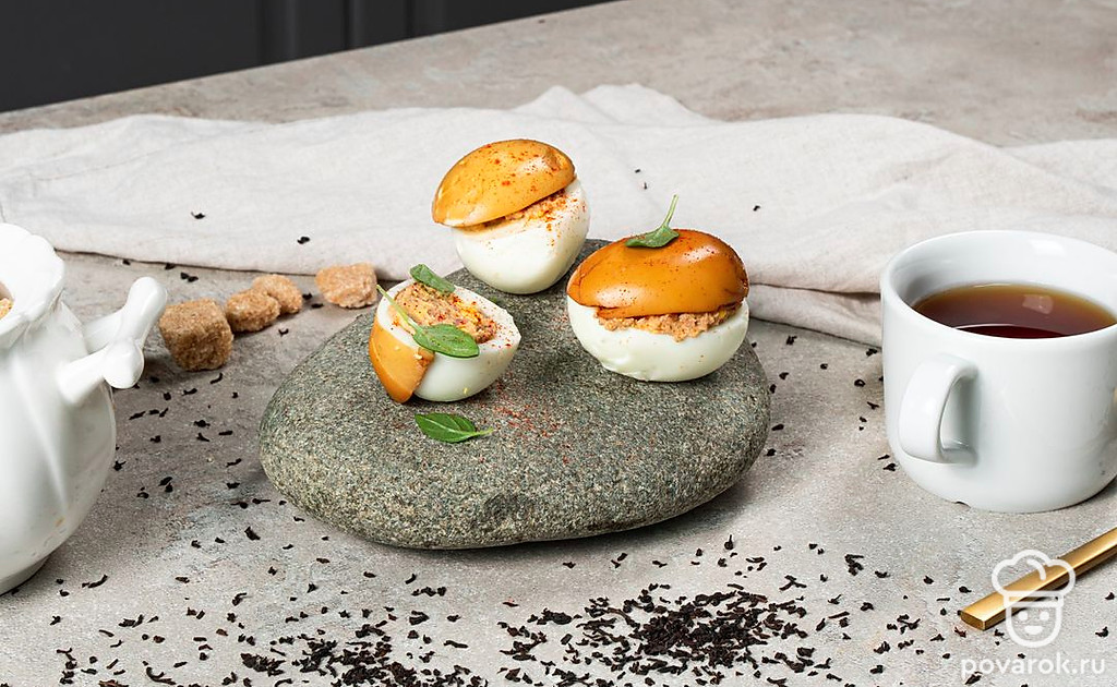 Фаршированные яйца-грибочки — это необычная и при этом очень несложная в приготовлении закуска, в которой аппетитная печень трески отлично сочетается с яичными желтками и майонезом. Блюдо получается очень интересным, вкусным и при этом полезным. Печень трески оказывает огромное влияние на здоровье, так как содержит незаменимые жирные кислоты, а также витамины A и D. Однако стоит помнить, что готовая закуска получается очень калорийной, поэтому злоупотреблять ею не стоит.