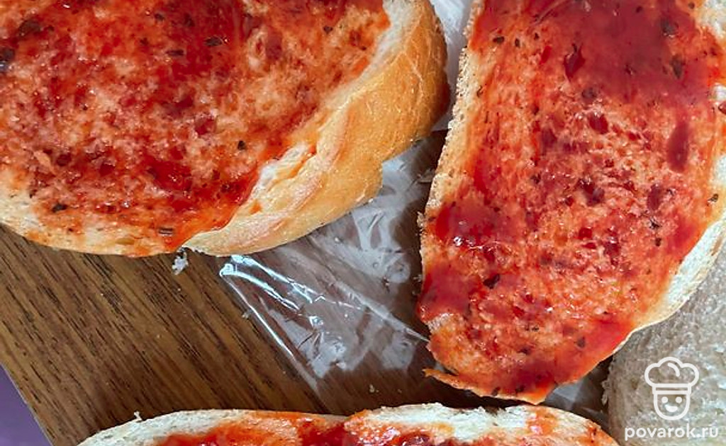 Намазываем кетчуп можно пожеланию ещё и майонезом сверх кетчупа.