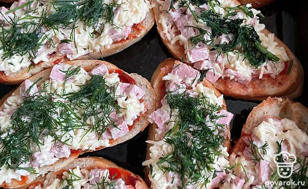 Бутерброды с колбасой, сыром и свежей зеленью на завтрак