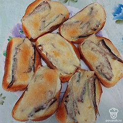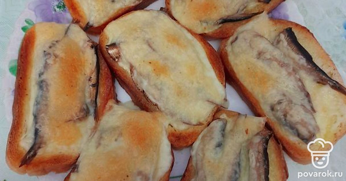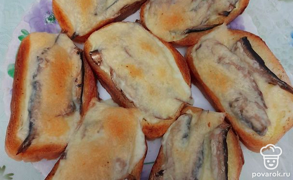 Запекаем бутерброды в духовке при 180 градусах, либо в СВЧ на режиме гриль в течение 8-10 минут.