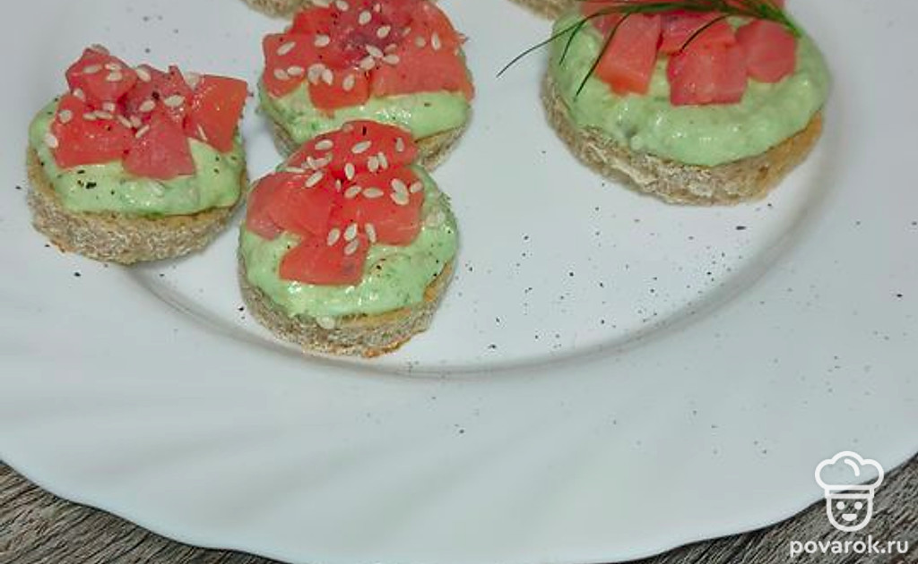 Вкусные бутерброды с кремом из авокадо и форелью прекрасно подойдут для завтрака, а также украсят любой праздничный стол.