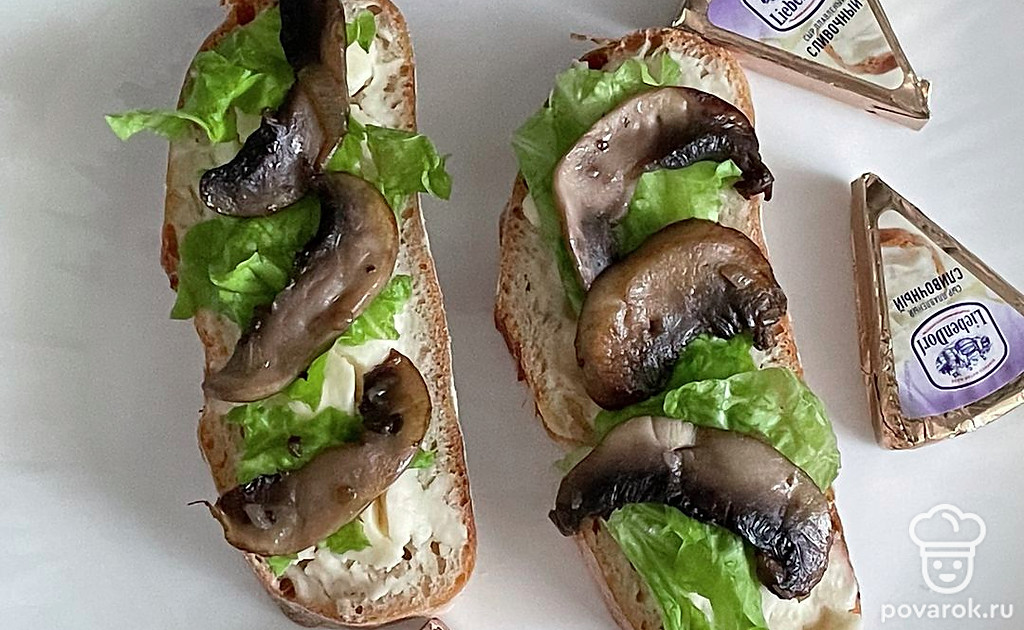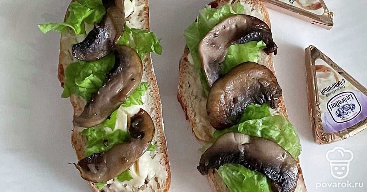 Ароматные грибы, нежный плавленый сыр, мягкая чиабатта — отличное сочетание!