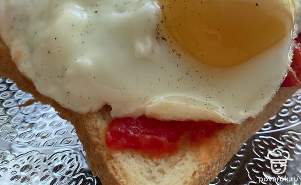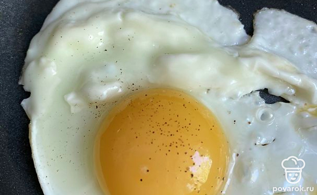 Разбить яйцо, жарить 2 минуты. После переложить на бутерброд.