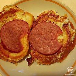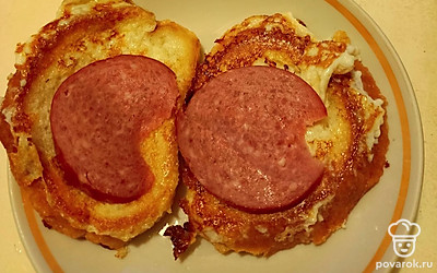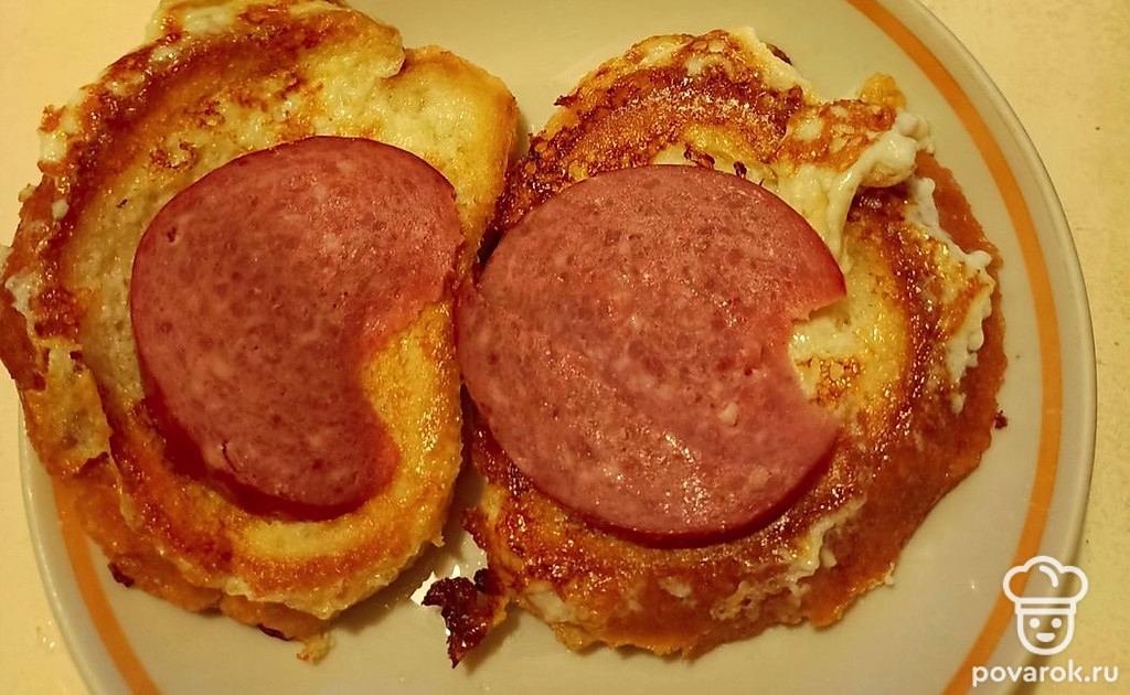 Выложить на сковороду хлеб и обжарить с двух сторон, до золотистой корочки.