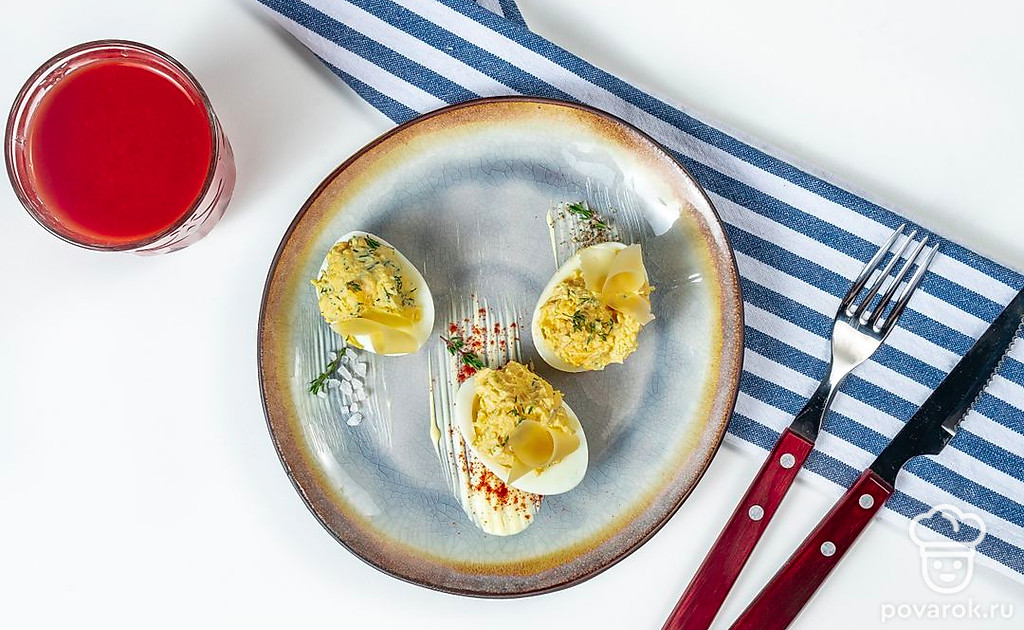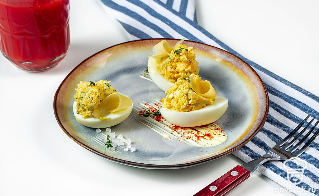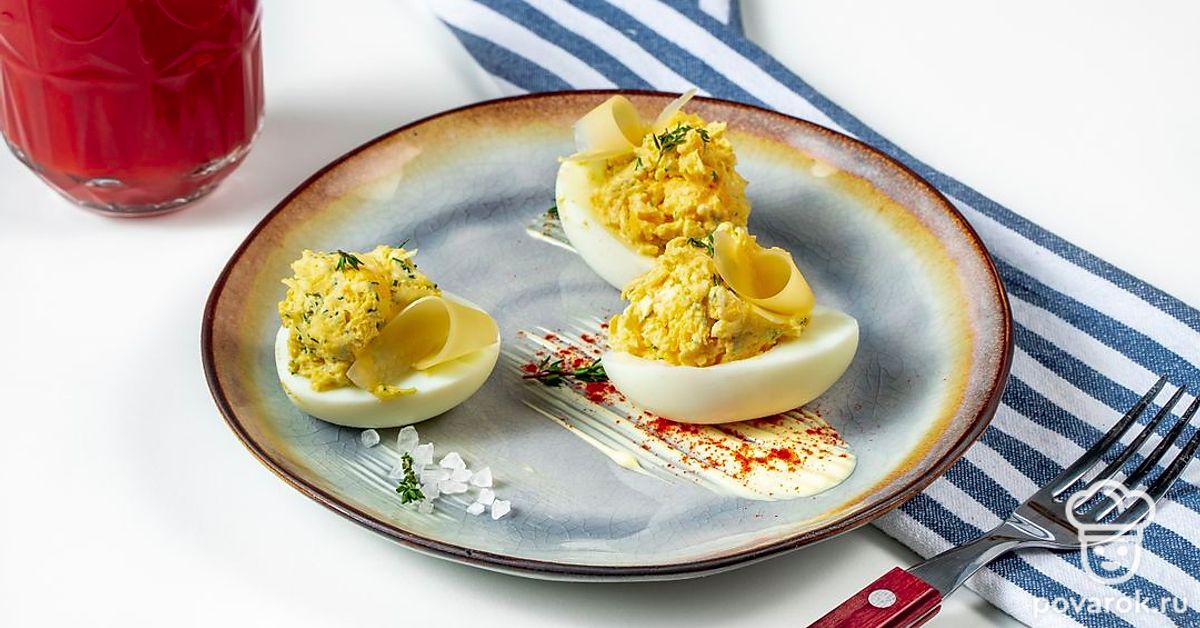 Фаршированные яйца — универсальная холодная закуска, начинкой которой может стать абсолютно любое сочетание продуктов. Блюдо готовится несложно и при этом всегда получается вкусным и сытным. Яйца, фаршированные сыром — один из вариантов приготовления закуски, в которой свежая зелень отлично сочетается с нежным сыром и пикантным чесноком, добавляющим блюду приятное послевкусие. С закуской можно поэкспериментировать, добавив к ней другие ингредиенты.