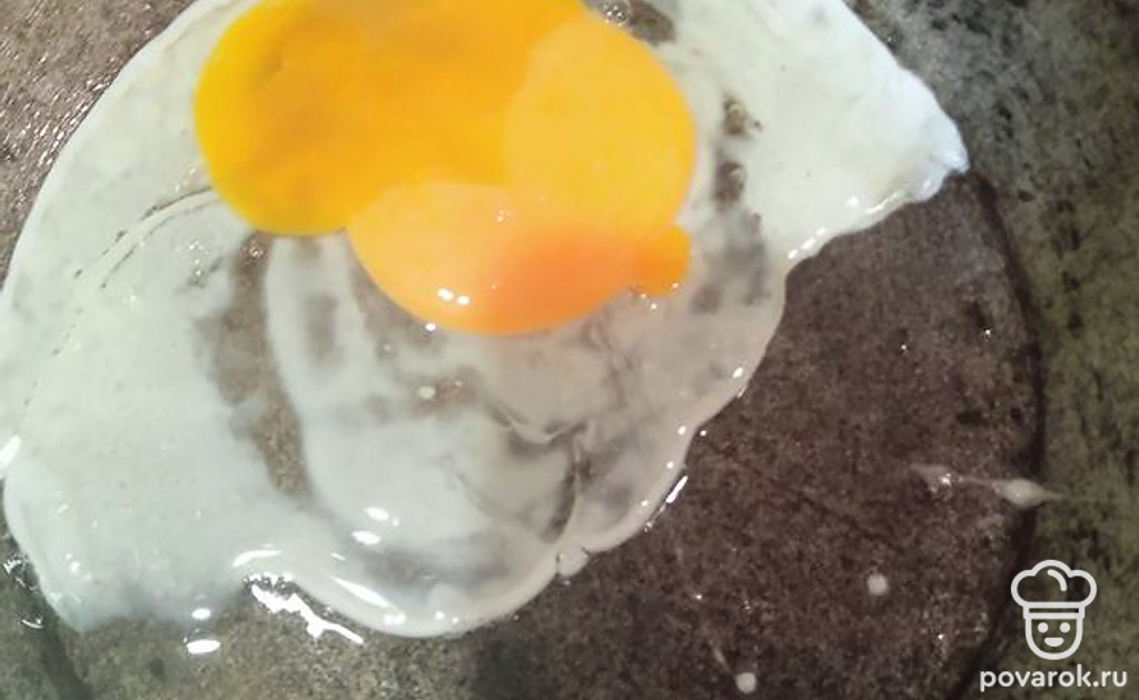 Взять куриное яйцо и разбить в сковороду. Не забыть посадить.