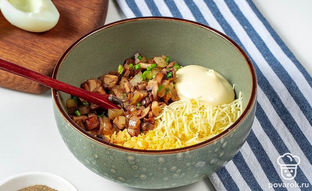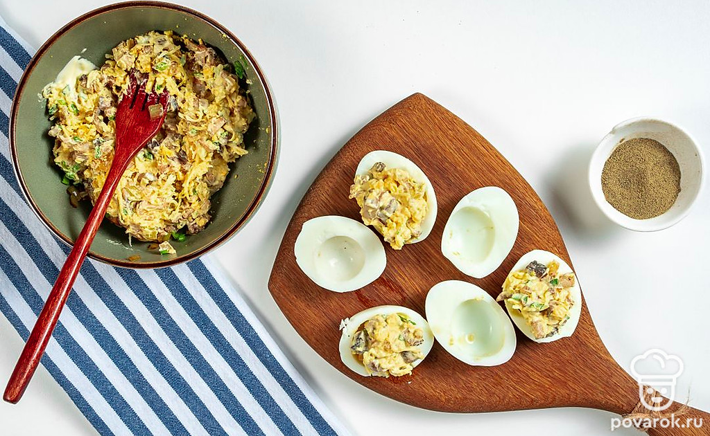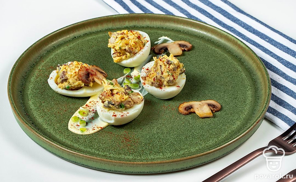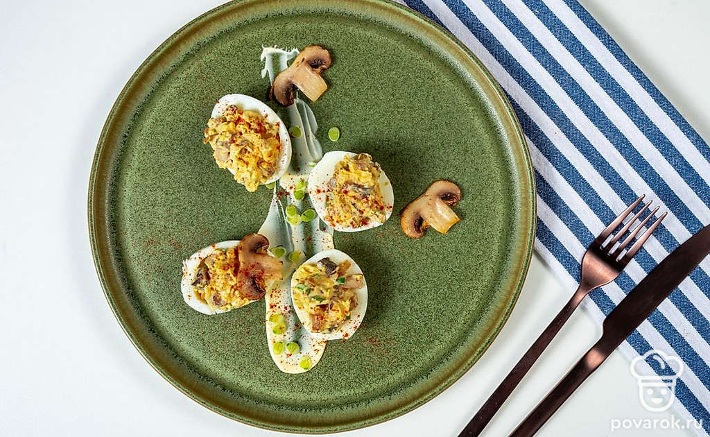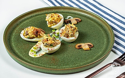 Яйца, фаршированные грибами и луком — вкусное, питательное и полезное блюдо, в котором нежные грибы прекрасно гармонируют с сыром и зеленью, создавая интересный вкусовой баланс. Для приготовления закуски рекомендуется выбирать шампиньоны. В их состав входит множество ценных витаминов и микроэлементов, необходимых для поддержания иммунитета. Кроме того, блюдо можно сделать менее калорийным, заменив майонез сметаной.