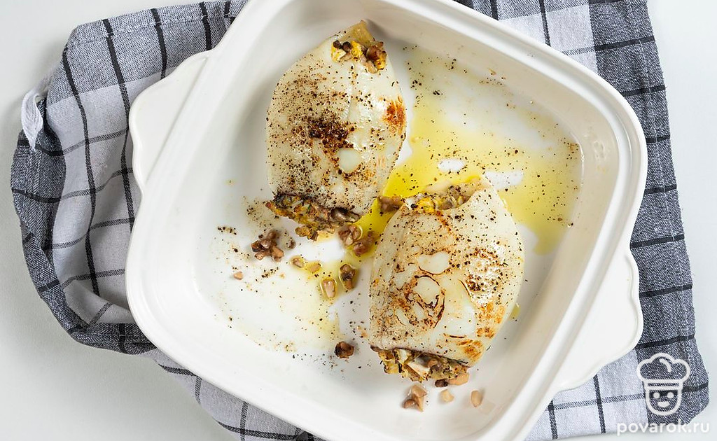 Кальмары — полезные морепродукты, которые славятся низкой калорийностью и высоким содержанием белка и минералов. В античности их называли "крылатой рыбой" за то, как они выпрыгивают из воды. Для фарширования подходят небольшие кальмары с мягким и нежным мясом. Их можно наполнять разными продуктами, но есть общее правило: используется готовая к употреблению начинка. В этом рецепте — грибы и сыр.