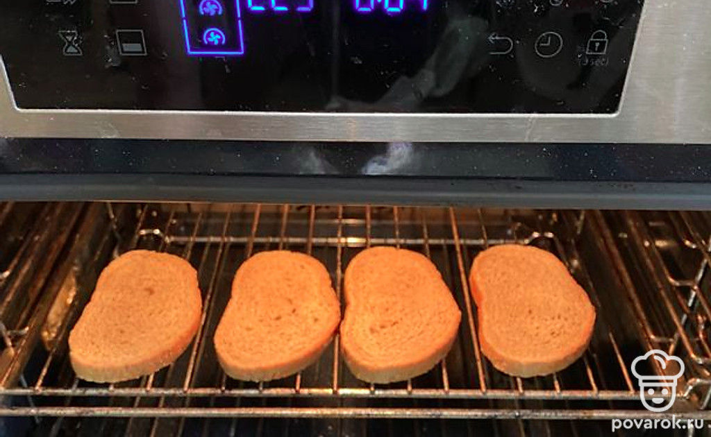Поджарьте хлеб в тостере или духовке 4 минуты на 225 градусах.