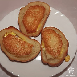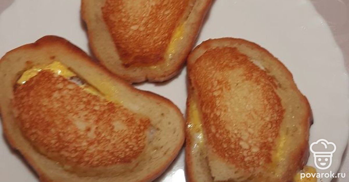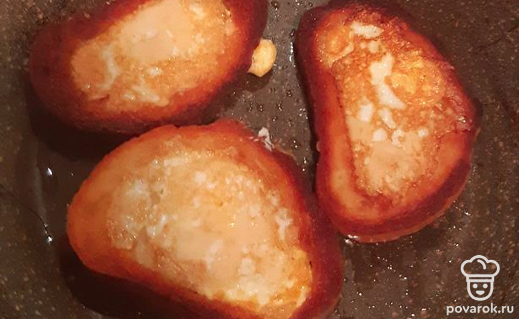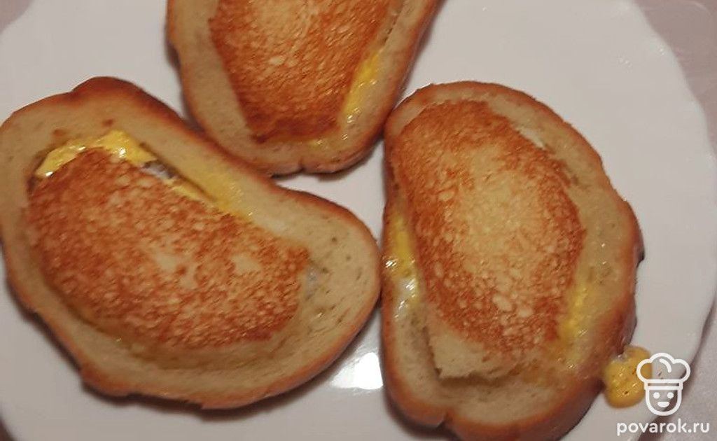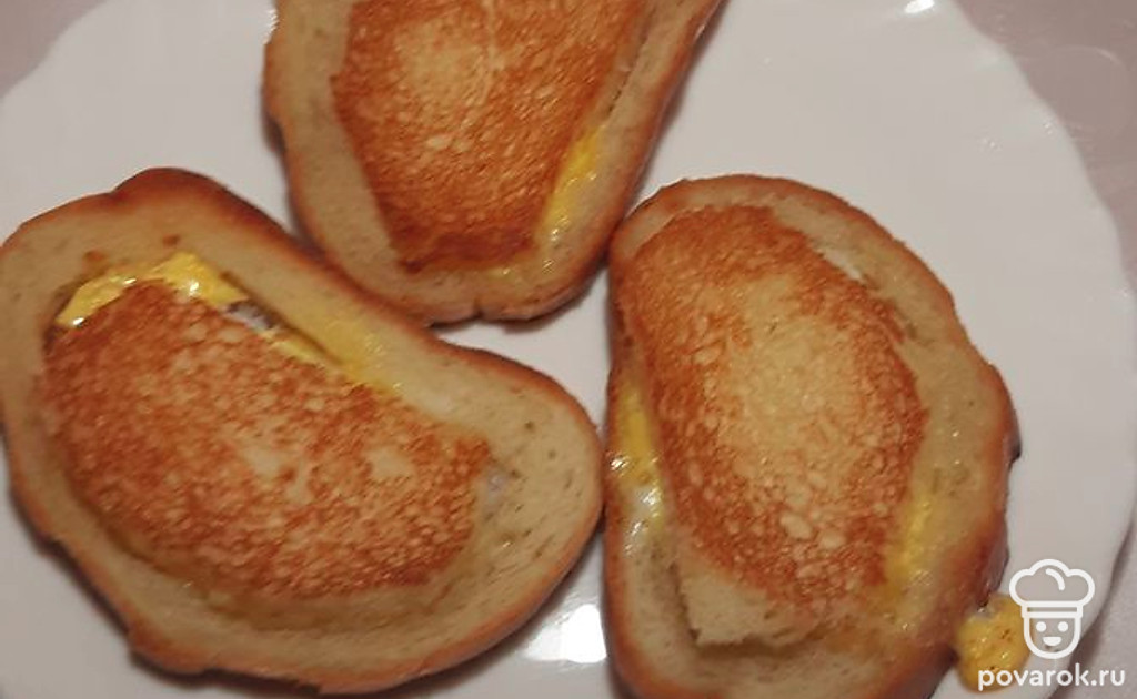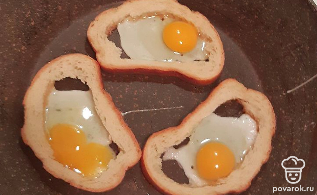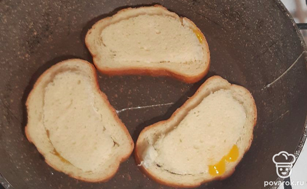 На разогретую сковороду наливаем масло и выкладываем хлеб.