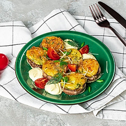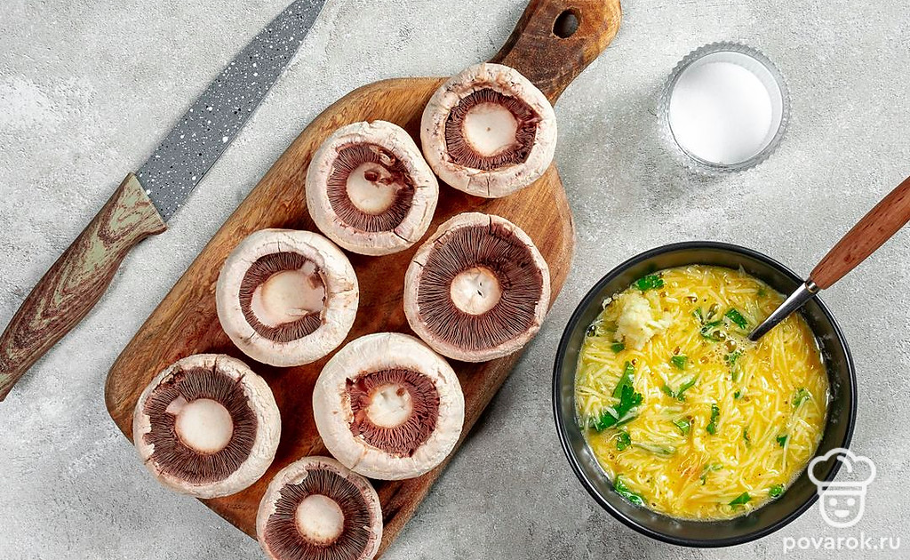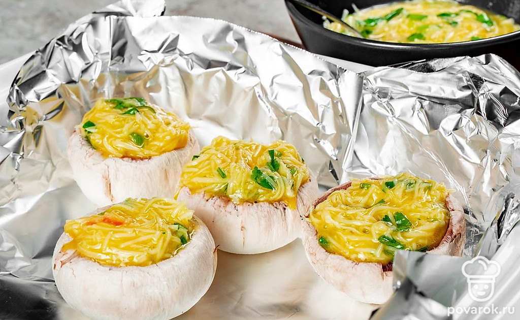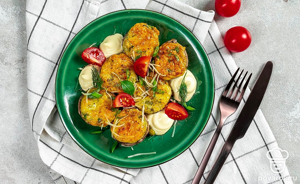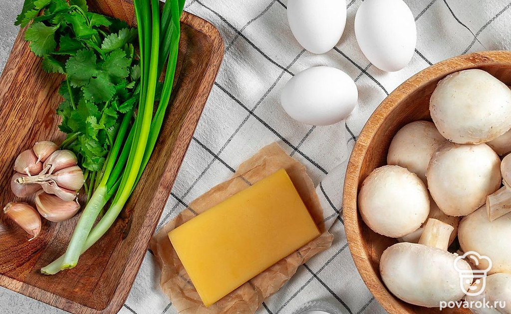 Фаршированные шампиньоны представляют собой очень аппетитную и несложную в приготовлении закуску с приятным ароматом и удивительным вкусом. Свежая зелень прекрасно гармонирует с яйцами и сыром, а дополняют блюдо жгучие зубчики чеснока, добавляя ему приятную пикантность. Закуска получается не только вкусной, но еще и полезной. В ее составе содержится большое количество белка, фосфора и аминокислот, необходимых организму для эффективной работы.