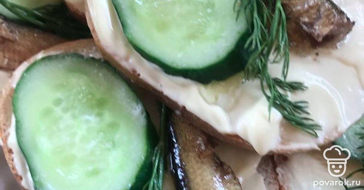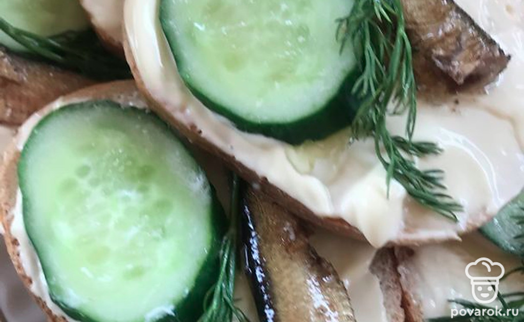 Предлагаю Вам простой рецепт бутербродов со шпротами, огурцами и зеленью. Такие бутерброды украсят любой стол.