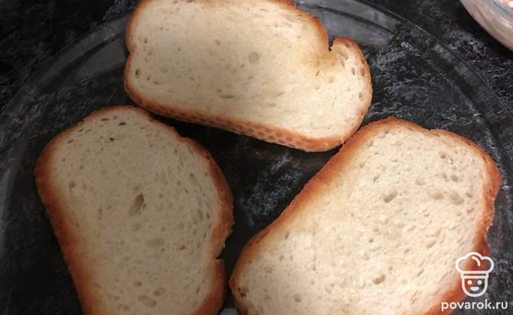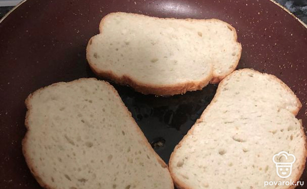 Обжариваем хлеб с двух сторон на капле растительного масла.