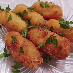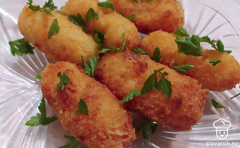 Из полученной смеси, сформируйте в руках сырные палочки, небольшого размера. Палочка должна помещаться в ладошку. По желанию можете обмокать сырные палочки в панировочных сухарях.