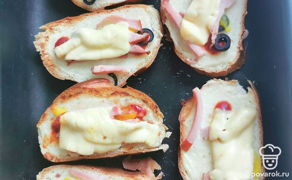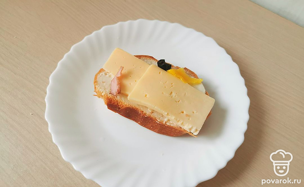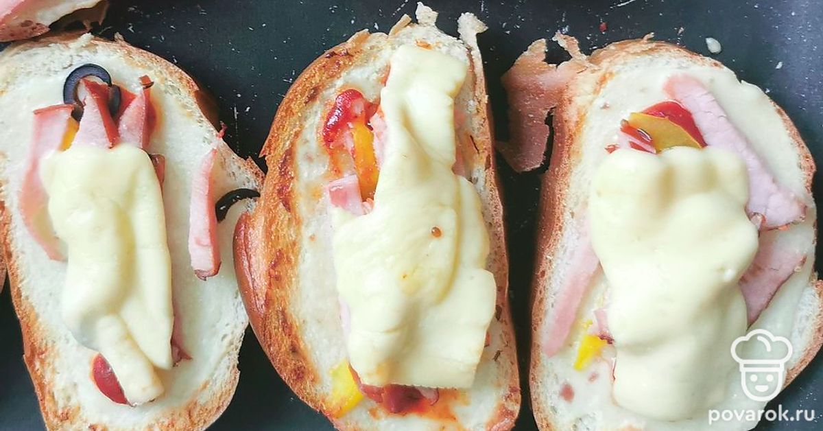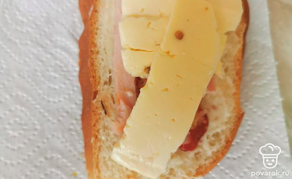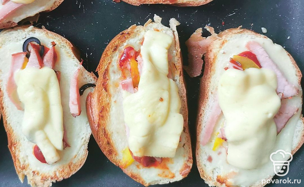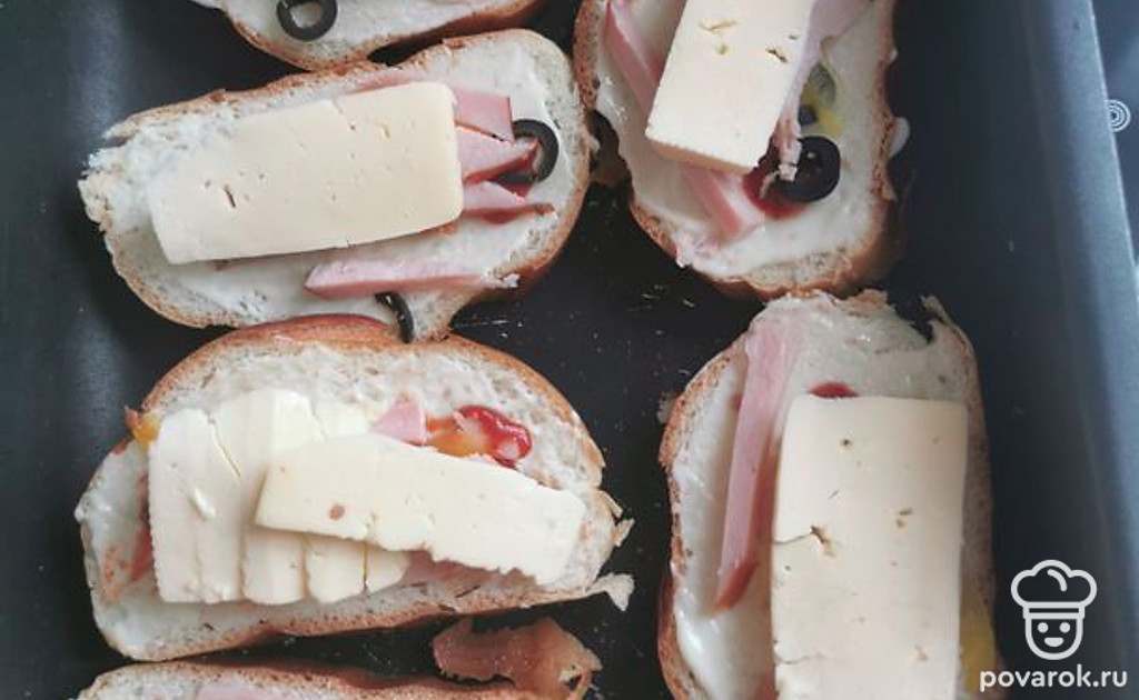 Через 10 минут сыр слегка зарумянится. Горячие бутерброды готовы. Сразу подавайте к столу.