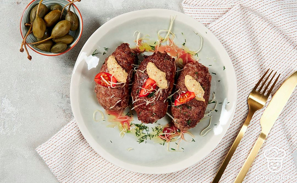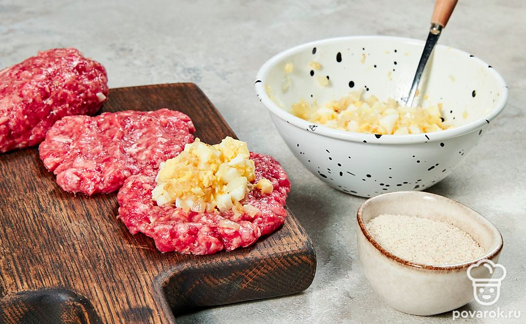 Мясо, фаршированное яйцом, представляет собой котлету с начинкой, напоминающую зразы, которые являются национальным блюдом белорусской и польской кухонь. Готовое блюдо получается очень вкусным и сытным, а его приготовление занимает не более 45 минут. Если вы хотите сделать блюдо более сочным и мягким, добавьте к мясу батон, предварительно размоченный в молоке. Благодаря этому закуска значительно преобразится.