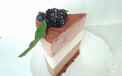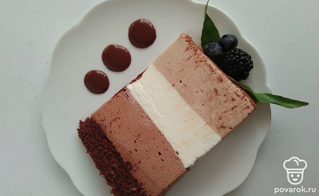Десерт — блюдо для удовольствия и отдыха. Оно должно быть в меру сладким, очень вкусным и аппетитно красивым. Именно таким получается неаполитанский террин, приготовленный по этому рецепту. Невероятно вкусный сливочно-шоколадный трехслойный мусс на темном бисквите с кофейным соусом готовится на удивление просто. В составе мусса желатин, поэтому большую часть времени приготовления он застывает в холодильнике.