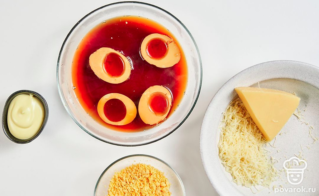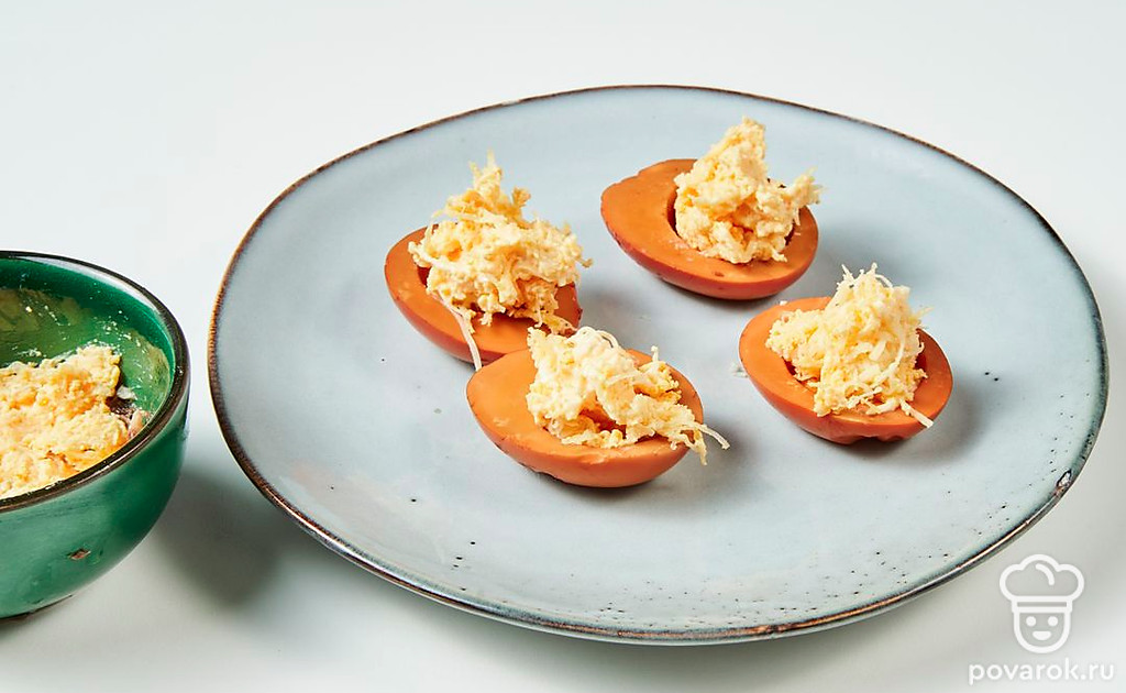 Сыр, чеснок и майонез — одна из самых удачных начинок для отварных яиц. По этому рецепту закуска готовится в виде грибочков. Такая кулинарная композиция привлечет внимание не только взрослых гостей за праздничным столом, но и детей. Готовится блюдо очень просто и быстро. Чтобы яйца получились ровными, строго соблюдайте пошаговые действия. Яйца, фаршированные сыром, чесноком и майонезом, приготовленные строго в соответствии с рецептом, получаются очень вкусными, сочными и аккуратными.