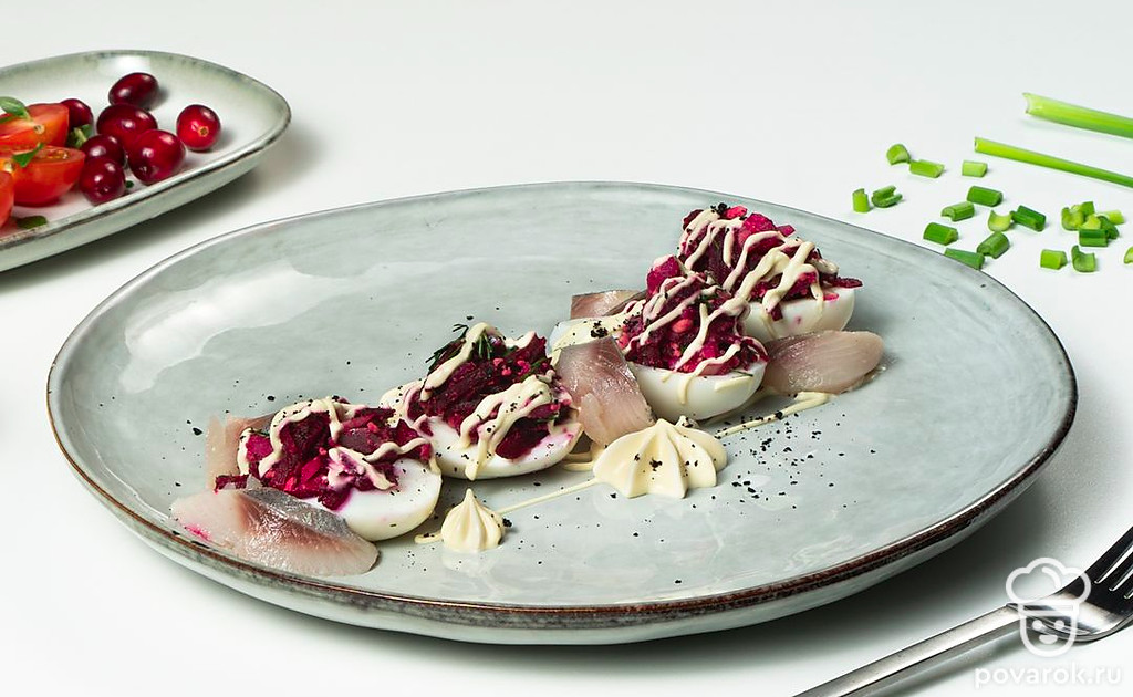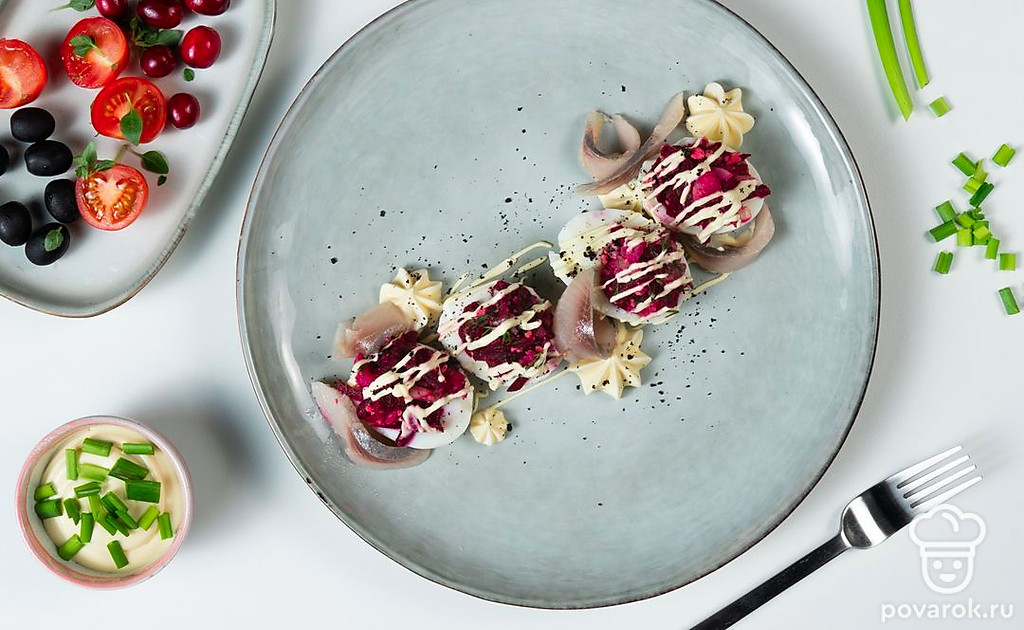 Яйца, фаршированные селедкой под шубой