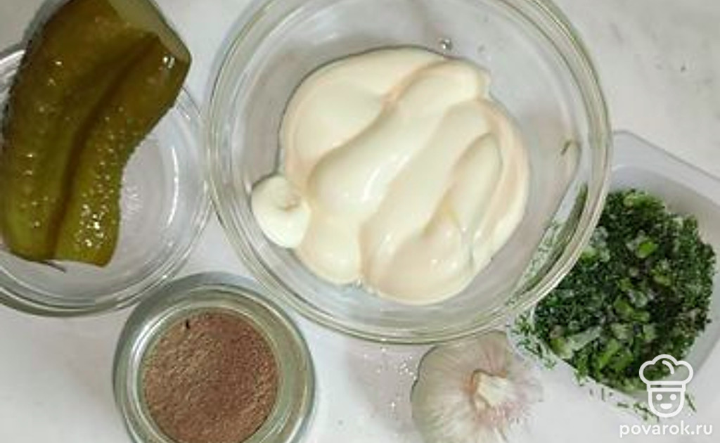 Пикантный сосус тартар из соленых огурчиков, майонеза и специй
