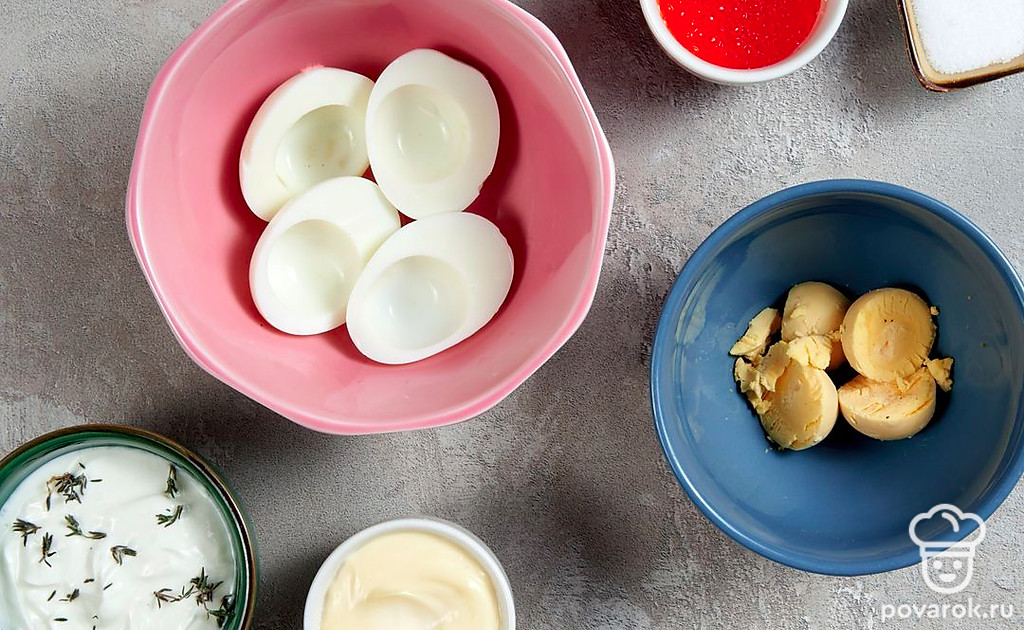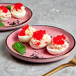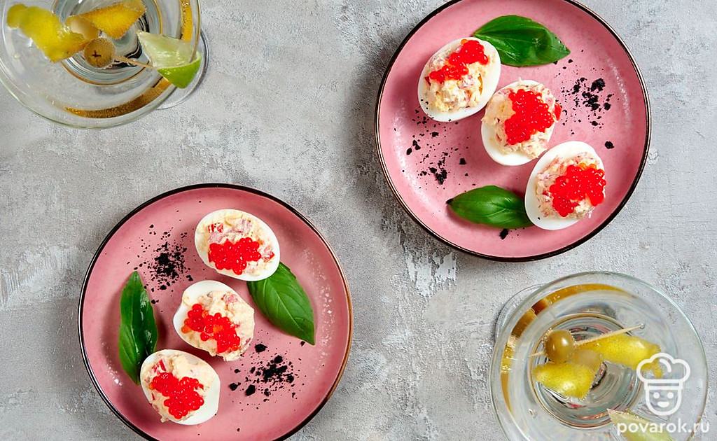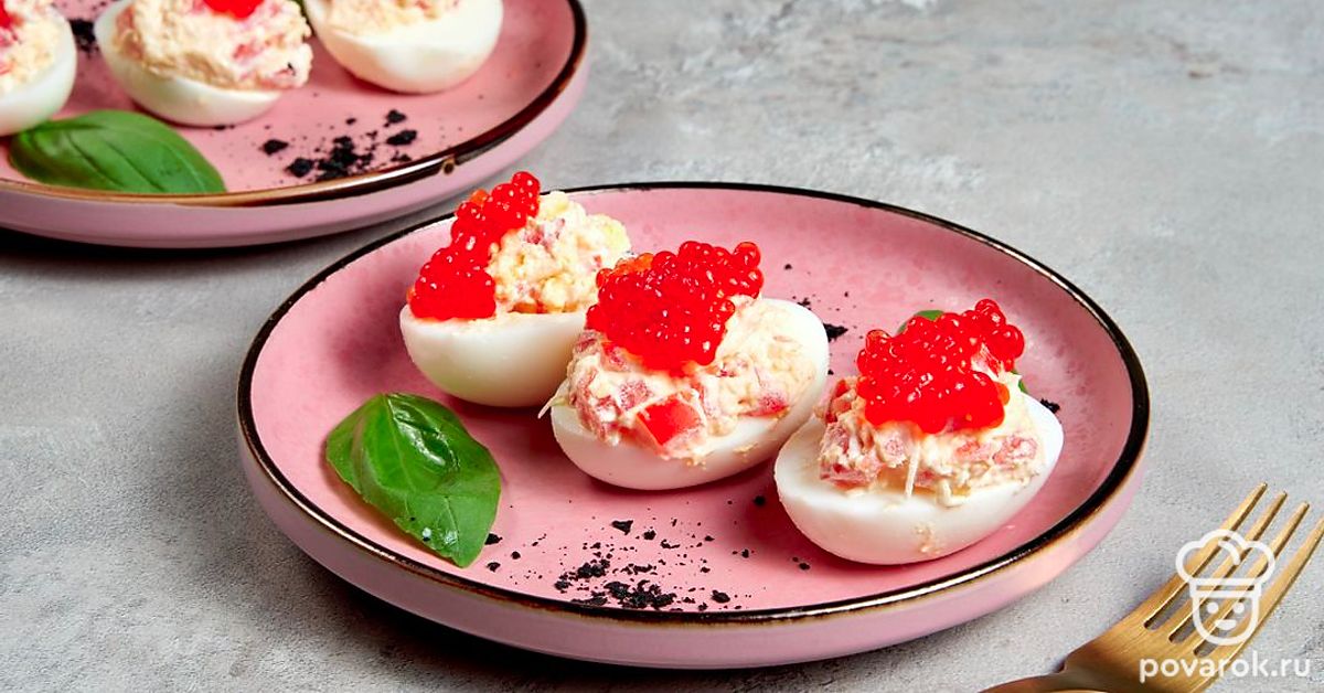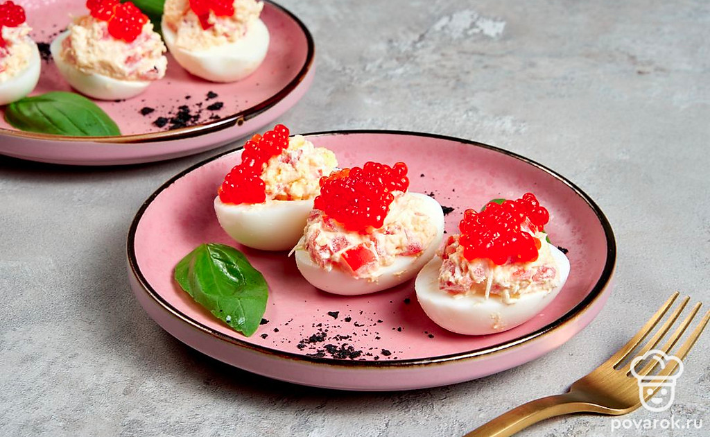 Фаршированные яйца — идеальная закуска для любого повода, сытная и в меру легкая. Начинки могут быть самыми разнообразными. Популярность фаршированные яйца обрели после появления фуршетных столов. В СССР закуска считалась доступной за счет дешевизны и простоты приготовления — если в домашнем хозяйстве есть курицы, продукты для половины блюда уже не надо покупать. Добавьте к фаршированным яйцам свежую зелень, овощи и сметану, и они заиграют новыми красками на праздничном столе.