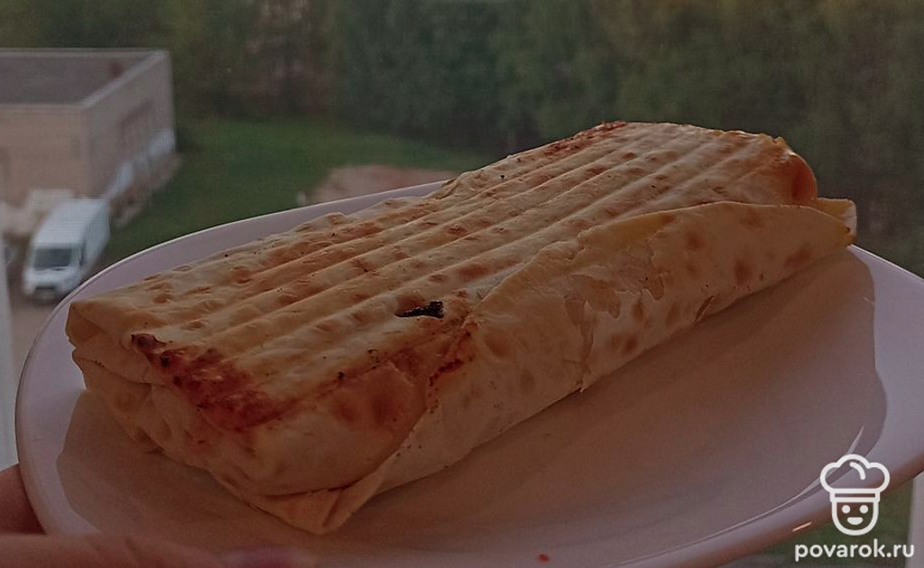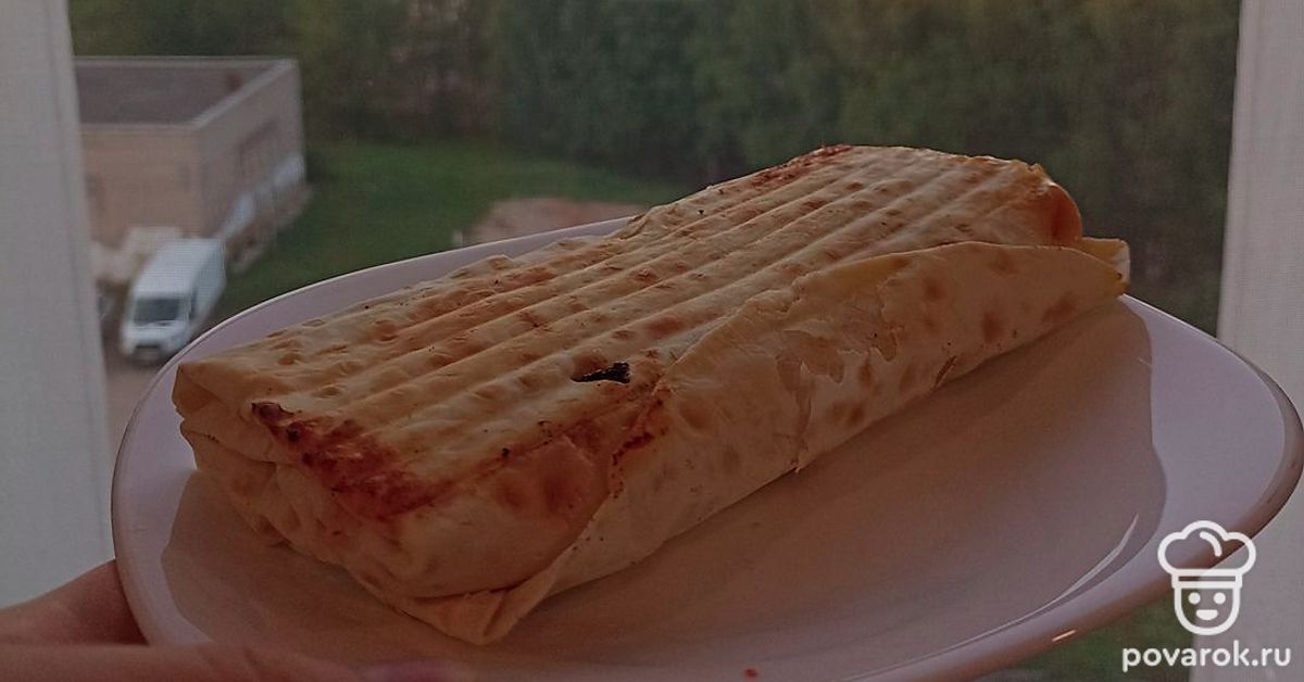 Поджариваем шаурму на сковородке или готовим на гриле.