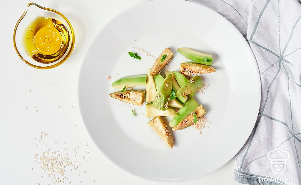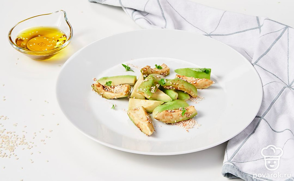 Авокадо под соевым соусом — легкая и вкусная закуска, которую можно приготовить всего за несколько минут. Авокадо богато витаминами и минеральными веществами. Соевый соус избавляет от головной боли, ускоряет циркуляцию крови, заряжает организм энергией. При выборе продукта в магазине обратите внимание на упаковку. Качественные соусы продаются только в стеклянных бутылках. В составе не должно быть искусственных красителей и ароматизаторов, а содержание белка должно достигать 6-8%.