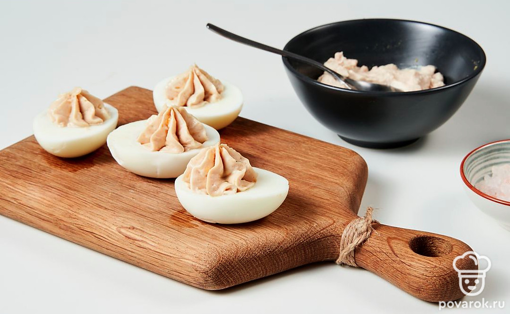 Печень трески в нашей стране долгое время считалась деликатесом и подавалась на стол исключительно в праздники. Сегодня этот продукт продается почти везде. Возьмите на заметку рецепт фаршированных яиц c треской. Закуска отлично подходит как для торжественных случаев, так и для обычных застолий. Блюдо готовится просто, но выглядит при этом нарядно и аппетитно.