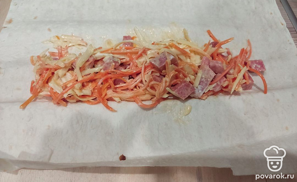 Этот рецепт я люблю за то, что шаурма получается вкусной и сочной и при этом готовится за несколько минут. Этот рецепт выручал меня, когда гости были уже на пороге и хотелось их чем-то порадовать. Блюдо подойдет в качестве закуски или к чаю.