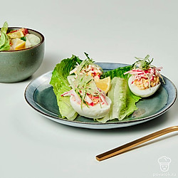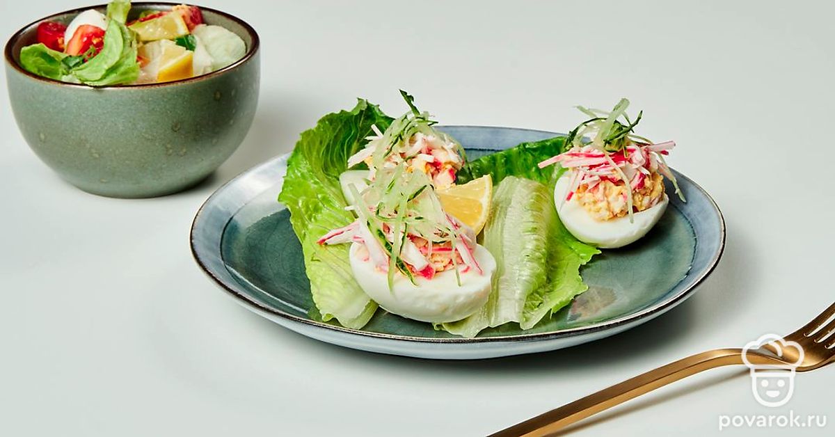 Чтобы сделать фаршированные яйца с крабовыми палочками полезнее, вместо майонеза используйте греческий йогурт с добавлением чайной ложки горчицы.